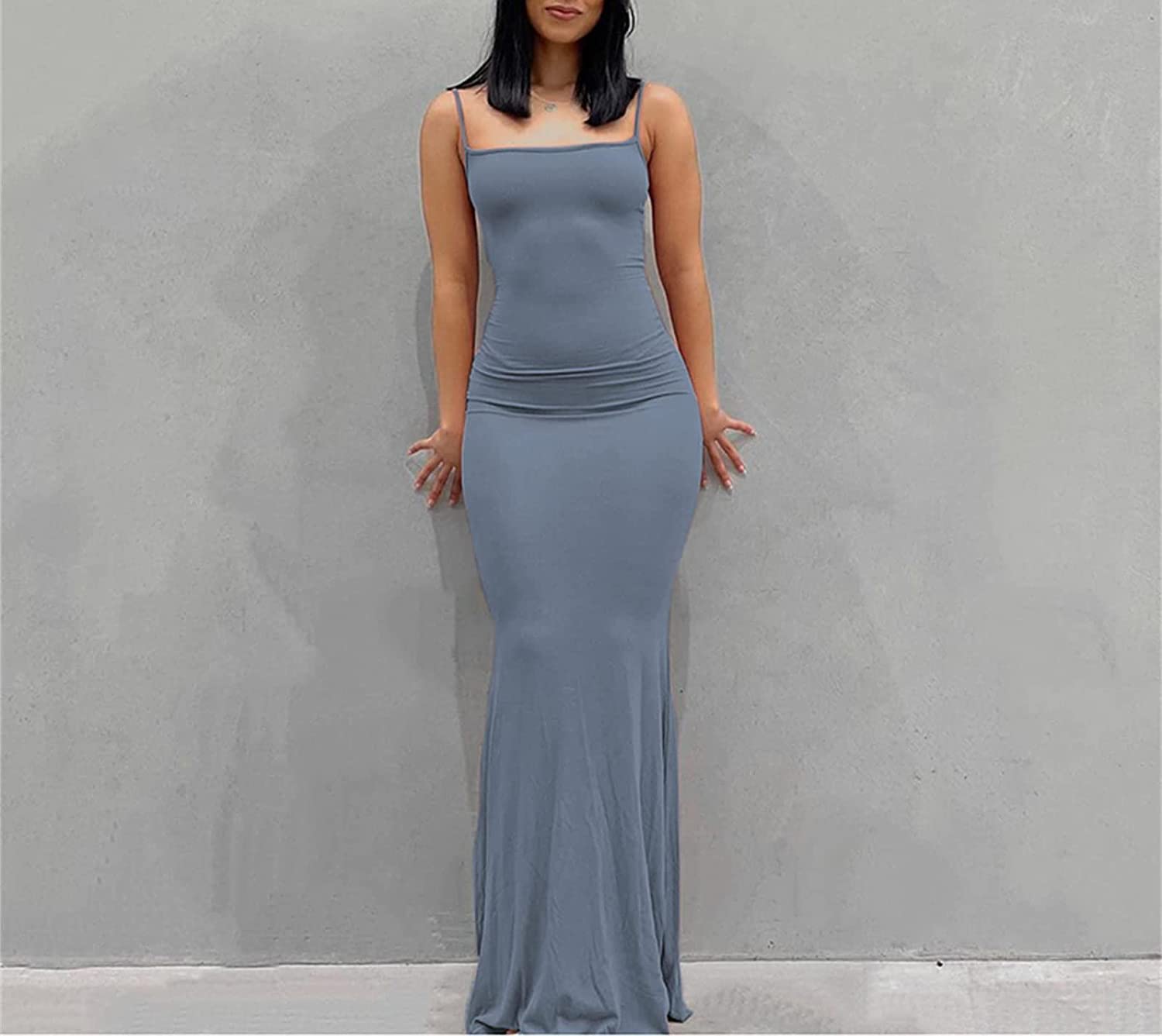 Women Spaghetti Strap Casual Maxi Dresses Sleeveless Cami Dress Party Club Bodycon Dress