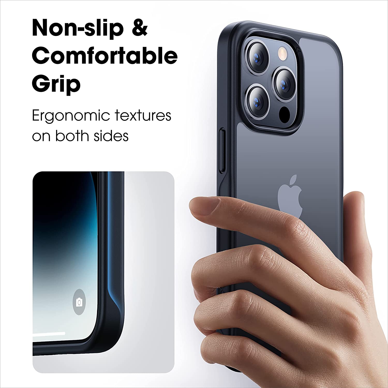 • [Skin-friendly Touch]: This case for iPhone 14 Pro Max has the delicate matte touch feeling. It is truly effective against fingerprints and scratches, even if there are stains, it can be wiped down easily, benefited from the exquisite crafts - combining matte coating with Bayer material by the 3 core steps of spraying, electroplating and overmolding.