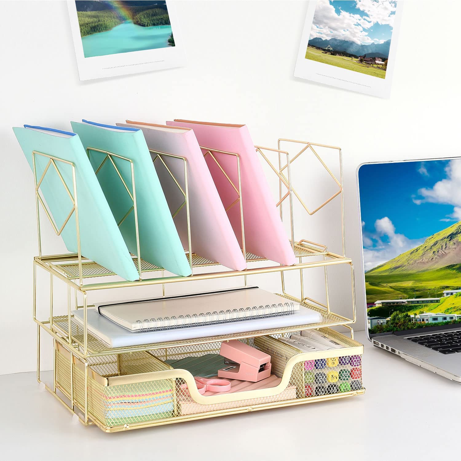 ?【EASY ACCESS】: The office organizer has 2 Letter Tray + 5 Upright Sections + 1 Sliding Drawer, which makes full use of your vertical and horizontal space, helps you quickly identify the contents of each compartment, and greatly improves your work efficiency.