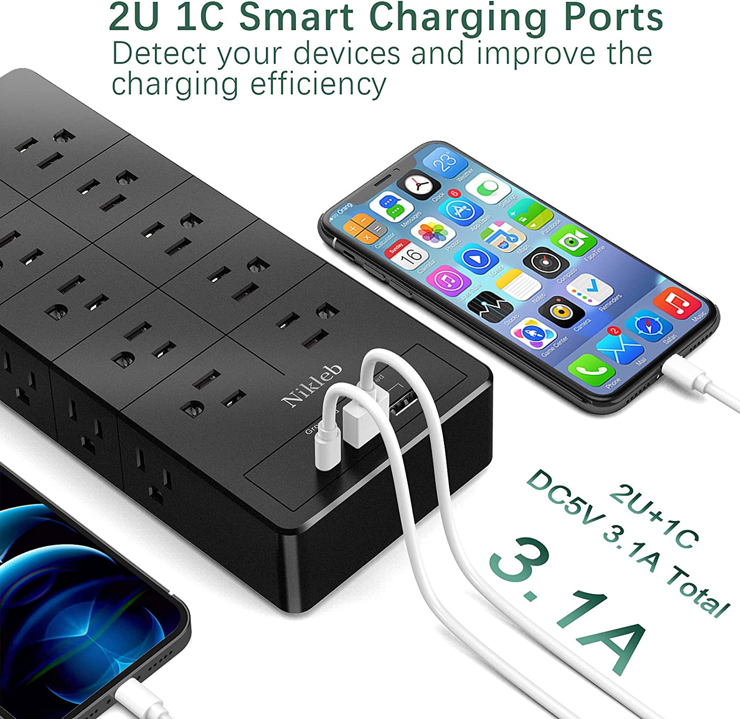 - Surge Protector Power Strip with USB: Power strip with 2 usb and 1 type c ports total 3.1A, "charging station upgraded version" with extra surge protection 2100J, not only for all kinds of usb plug electronics, but also all kinds of electrical appliances.