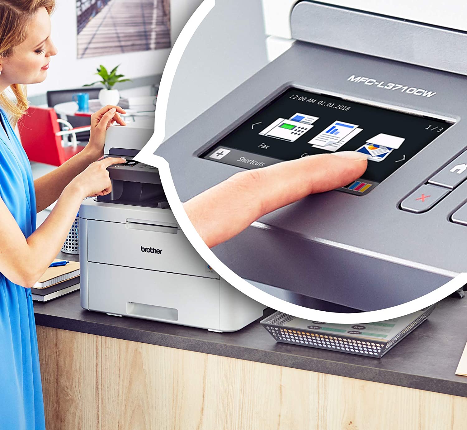 The reliable, robust Brother MFC L3710CW compact digital color all in one printer is a great choice for the busy home or small office looking for laser printer performance. Affordably add color to your printing for vivid images on all your documents. Quick print speeds of up to 19ppm, scan speeds up to 29ipm black and 22ipm color plus robust construction ensures your all in one works as hard as you do. The compact design is ideal for smaller spaces.The MFC L3710CW helps make color printing affordable for your home or small office looking for laser printer quality. Toner Save Mode helps you save on toner costs. With Brother affordable increased yield toner options, there’s never been a better time to add a Brother digital color printer to your home or small office. Choose from Standard or High Yield toner to help make color printing even more economical.Flexible paper handling options accommodate a variety of paper types, sizes and styles. The up to 250 sheet capacity adjustable paper tray lets you print longer with less refills and handles letter or legal size paper while the up to 50 sheet automatic document feeder helps you save time with easy multi page copy, scan and fax. The manual feed slot accommodates printing on card stock, envelopes, photo paper and more.The Brother MFC L3710CW offers versatile connection options with built in wireless and Wi Fi Direct or connect locally to a single computer via USB interface. Print wirelessly from your desktop, laptop, smartphone or tablet.(1) Print from and scan to popular cloud apps(2) directly from the 3.7"" color touchscreen including Dropbox, Google Drive, Evernote, OneNote and more. Help save time by creating custom shortcuts on the touchscreen for your most used features. The Brother MFC L3710CW compact digital color all in one printer has a one year limited warranty .(1)Requires connection to a wireless network. (2)Requires an Internet connection and an account with desired service. (3)Approximate cartridge yield in accordance with ISO/IEC 19798 (letter/A4). (4)Reprinted from pcmag with permission. 2017 Ziff Davis. All Rights Reserved. (5)The mobile device must have NFC capability and run Android OS 4.4 or later. (6)Requires additional purchase. (7)Approximate 18,000 page yield each drum unit (may vary by type of use). (8)The recommended range of monthly printed pages to achieve the best possible performance and printer life. Printers are intended to handle occasional usage beyond this range with little or no effect. Consistently printing above the recommended print volume, however, may adversely affect the print quality or life of the machine. It is always best to choose a printer with an appropriate recommended print volume to allow for any anticipated increase in printing needs.