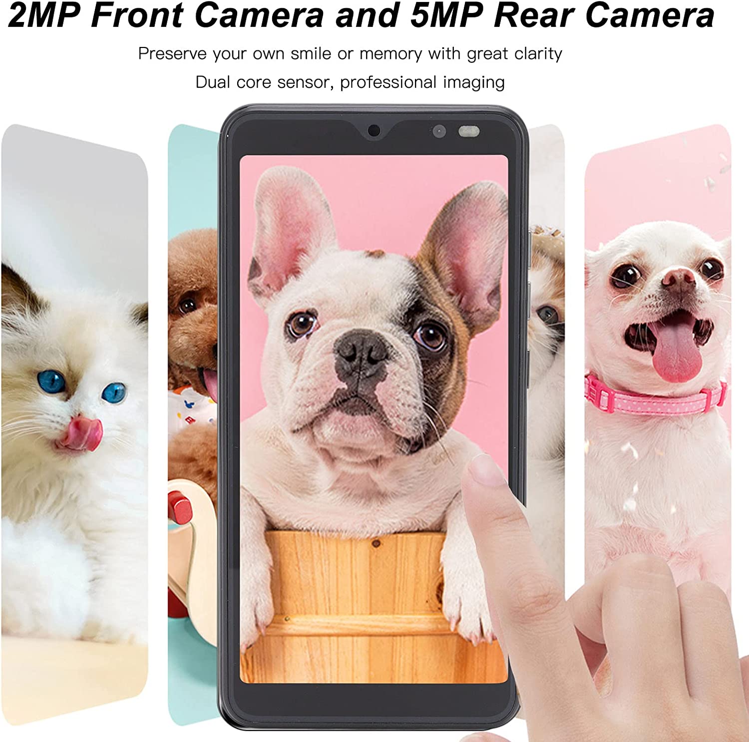• [2MP And 5MP] Phone also features a 2MP front camera and a 5MP rear camera, allowing you to preserve your smiles or memories with excellent clarity, and with dual core sensors, the phone becomes your professional imaging assistant.