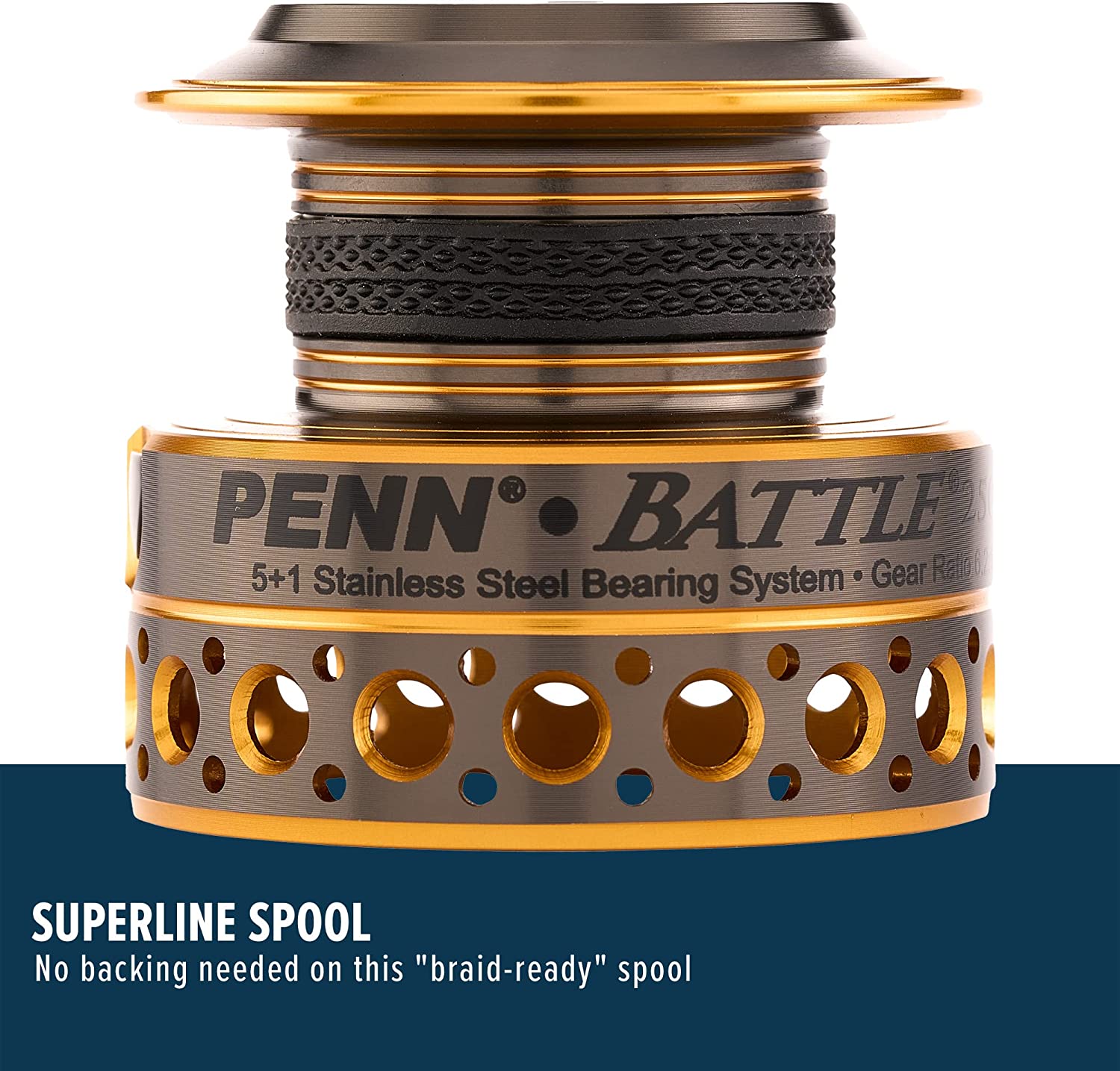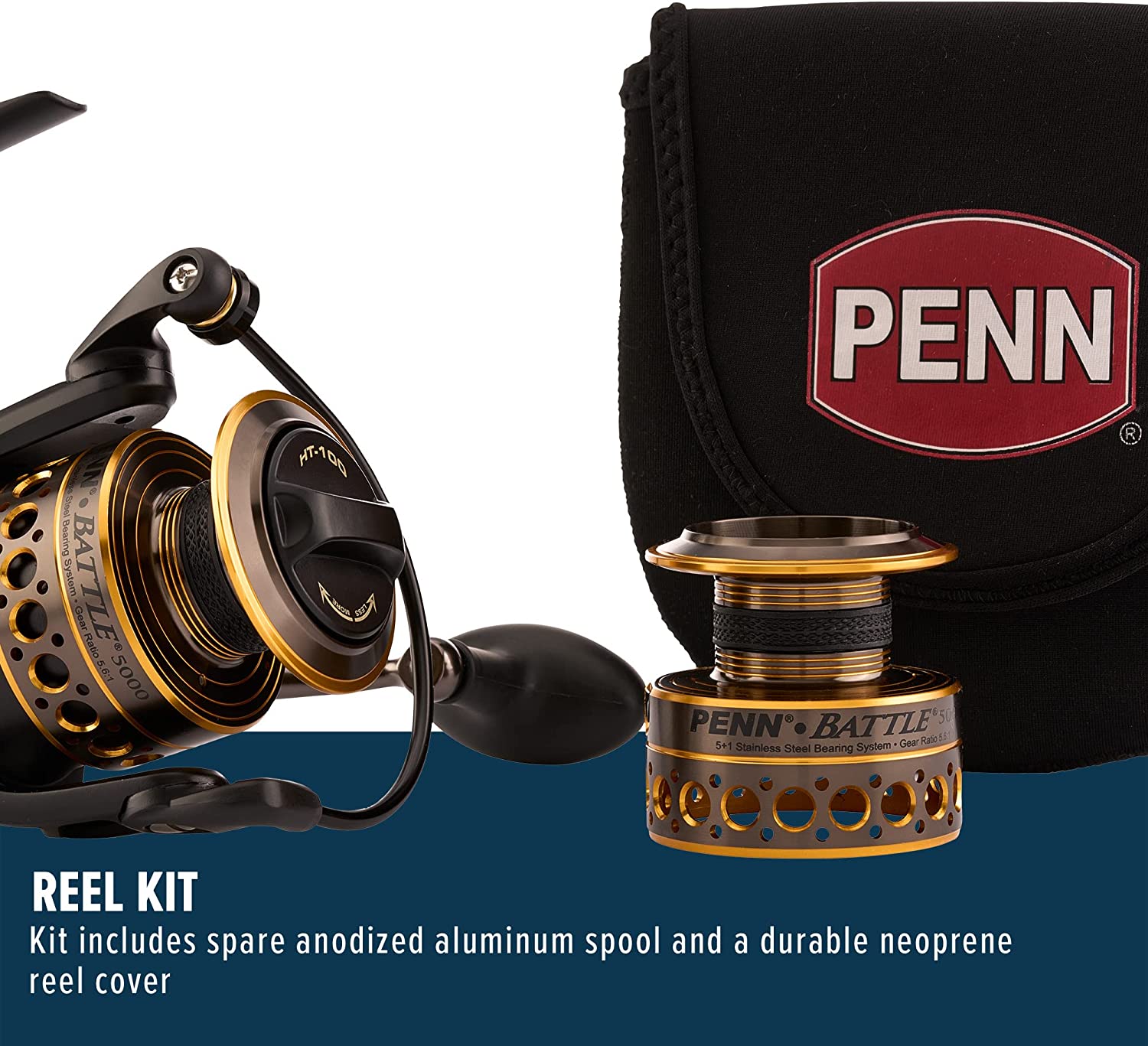 PENN Battle Spinning Reel Kit, Size 5000, Includes Reel Cover and Spare Anodized Aluminum Spool, Right/Left Handle Position, HT-100 Front Drag System