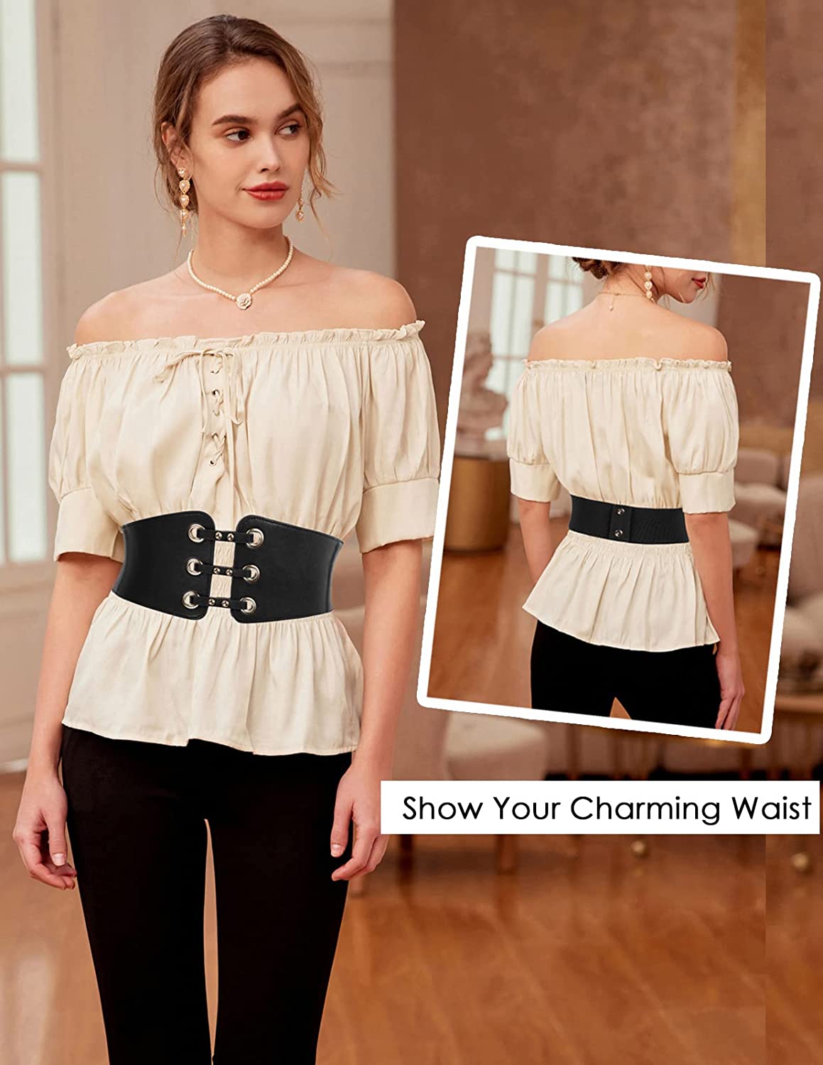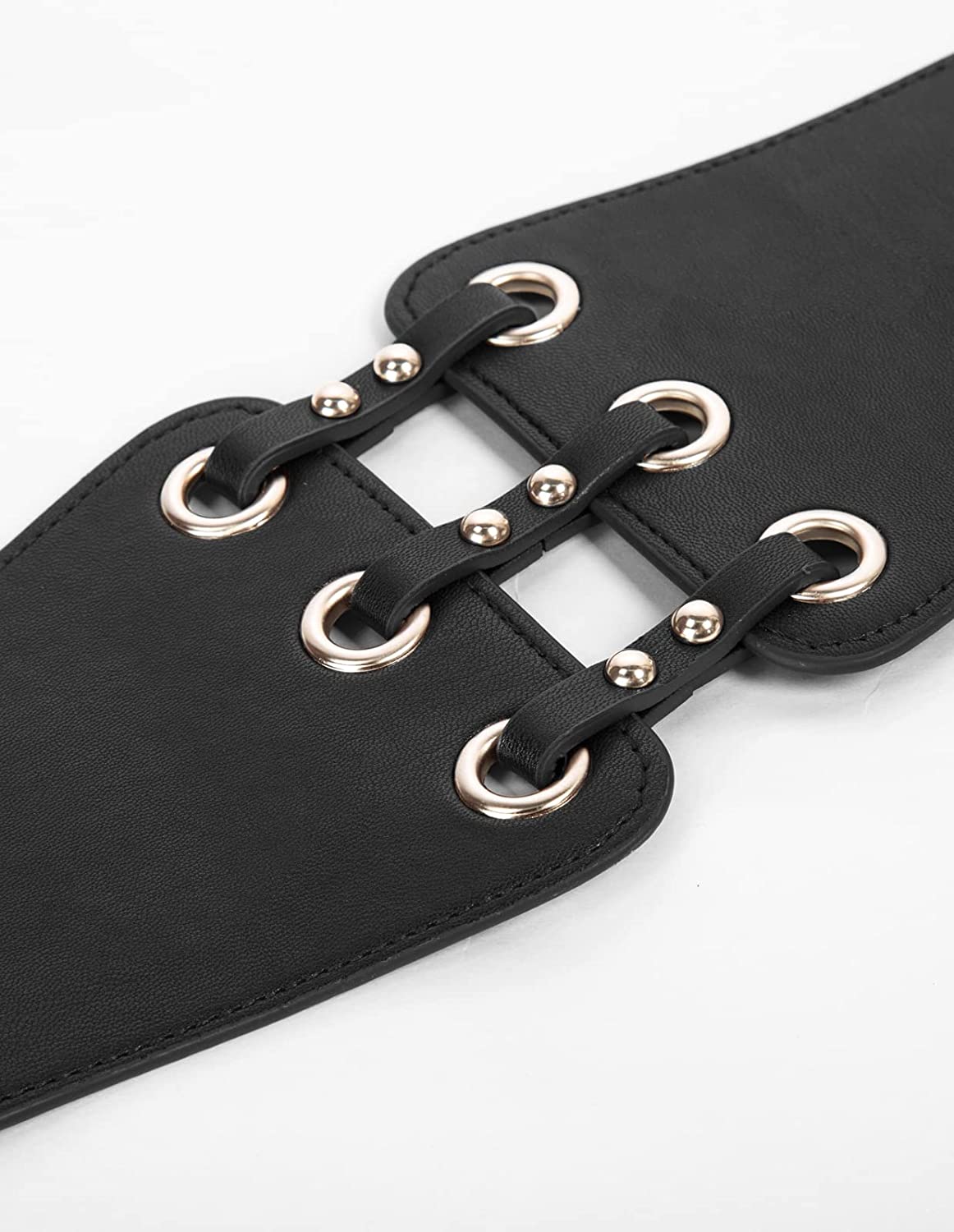 GRACE KARIN Women's PU Leather Belt Rivets Wide Waist Belt Stretch Waistband Steampunk Corset Belts for Shirts