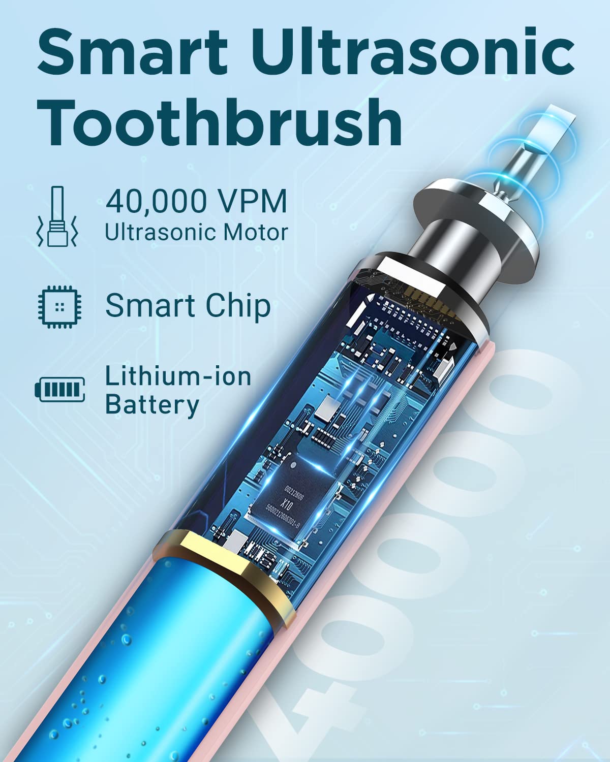 - Smart Timer for Brushing Thoroughly: With a gentle pulse reminds you to change to a new quadrant of your mouth, and signals when 2 minutes of brushing time is up. This smart sonic electric tooth brush for adults guides you to brush for the dentist-recommended time in all areas of your mouth to ensure a complete clean.
