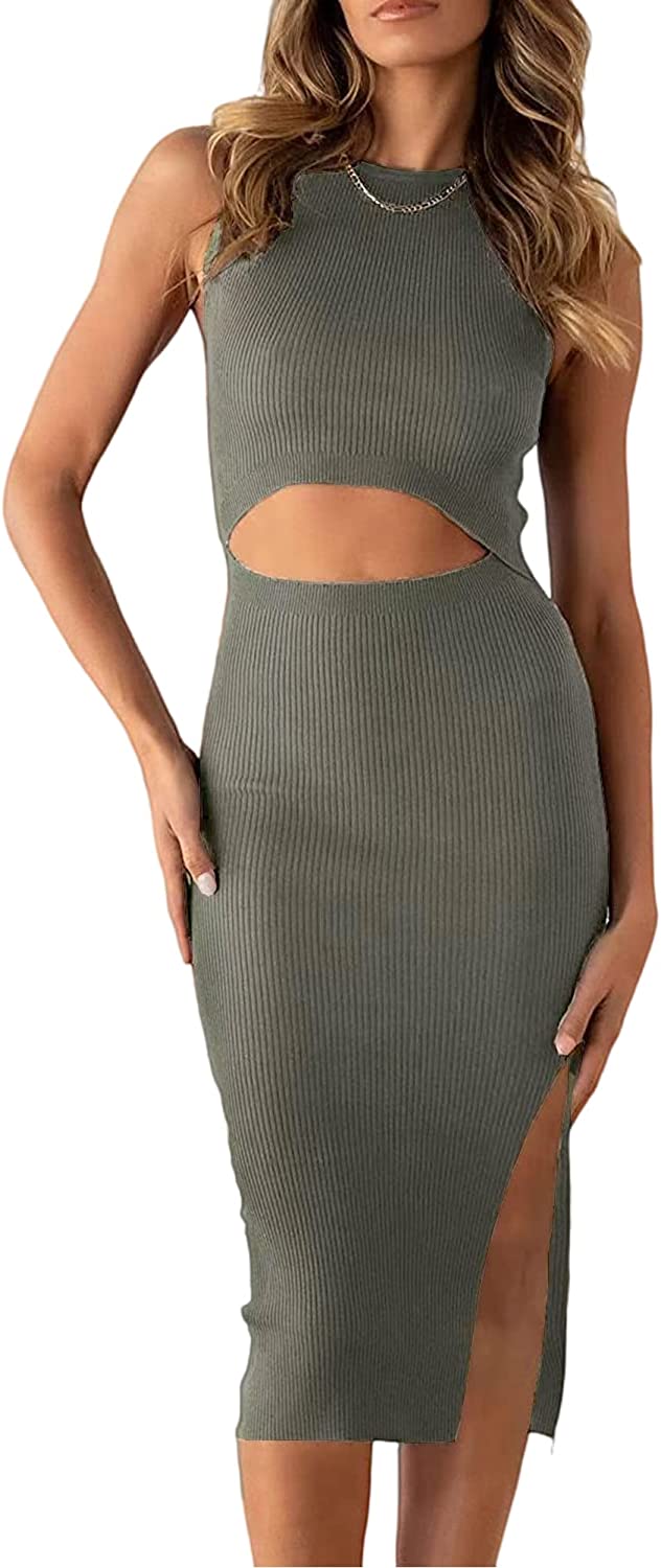 • INTELLECTUAL BEAUTY: This women knitted dresses fit wear four seasons.Cutout vest dress tight knitted dress reach knee length.Side split design are stylish and add a touch of sensuality and femininity,an irresistible basic item in your wardrobe.