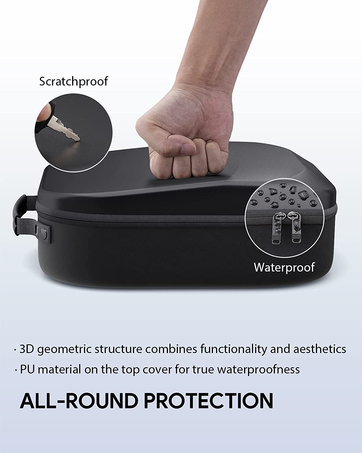 ☑️Shockproof & Waterproof - The top cover of the storage case is made of PU material, making it truly and completely waterproof. The button cover is made of durable EVA material, which is hard, shock, and dust resistant. Provides all-around protection for your Oculus Quest 2.
