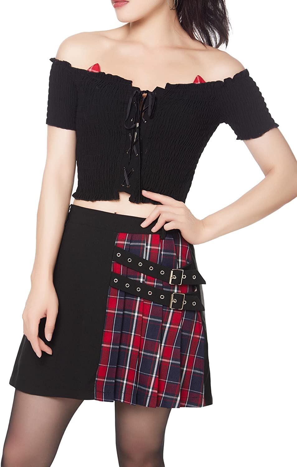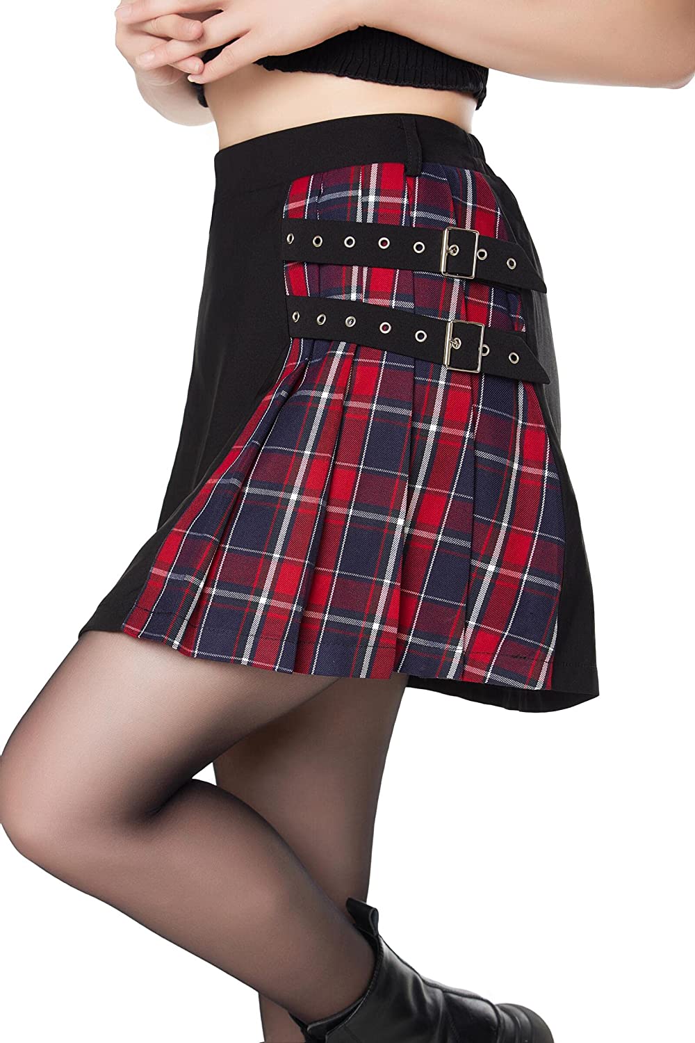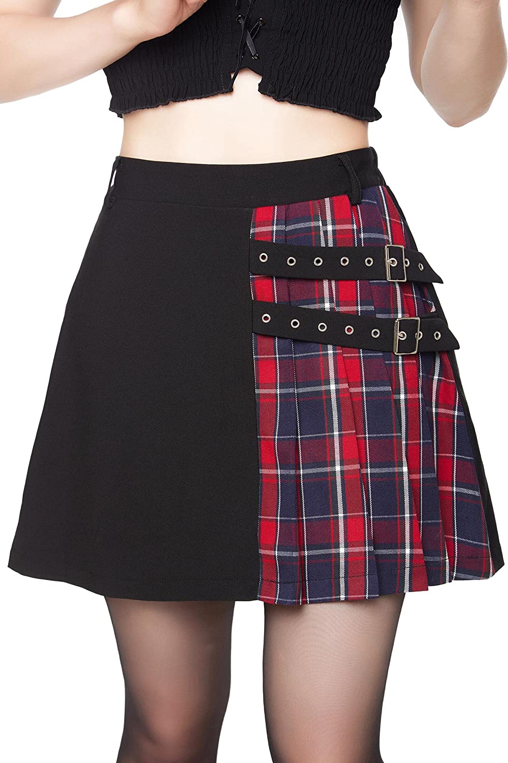 This gothic plaid pleated skirt is perfect for Goth girls, school girls. Accessorize with black knee-high socks, a shirt or cropped top, boots, heels or flats. Also suitable for everyday wear, birthday parties, raves, etc. Suitable for a variety of dark styles, it can be Harajuku skirt, punk rock skirt, emo skirt, goth skirt, alt skirt.