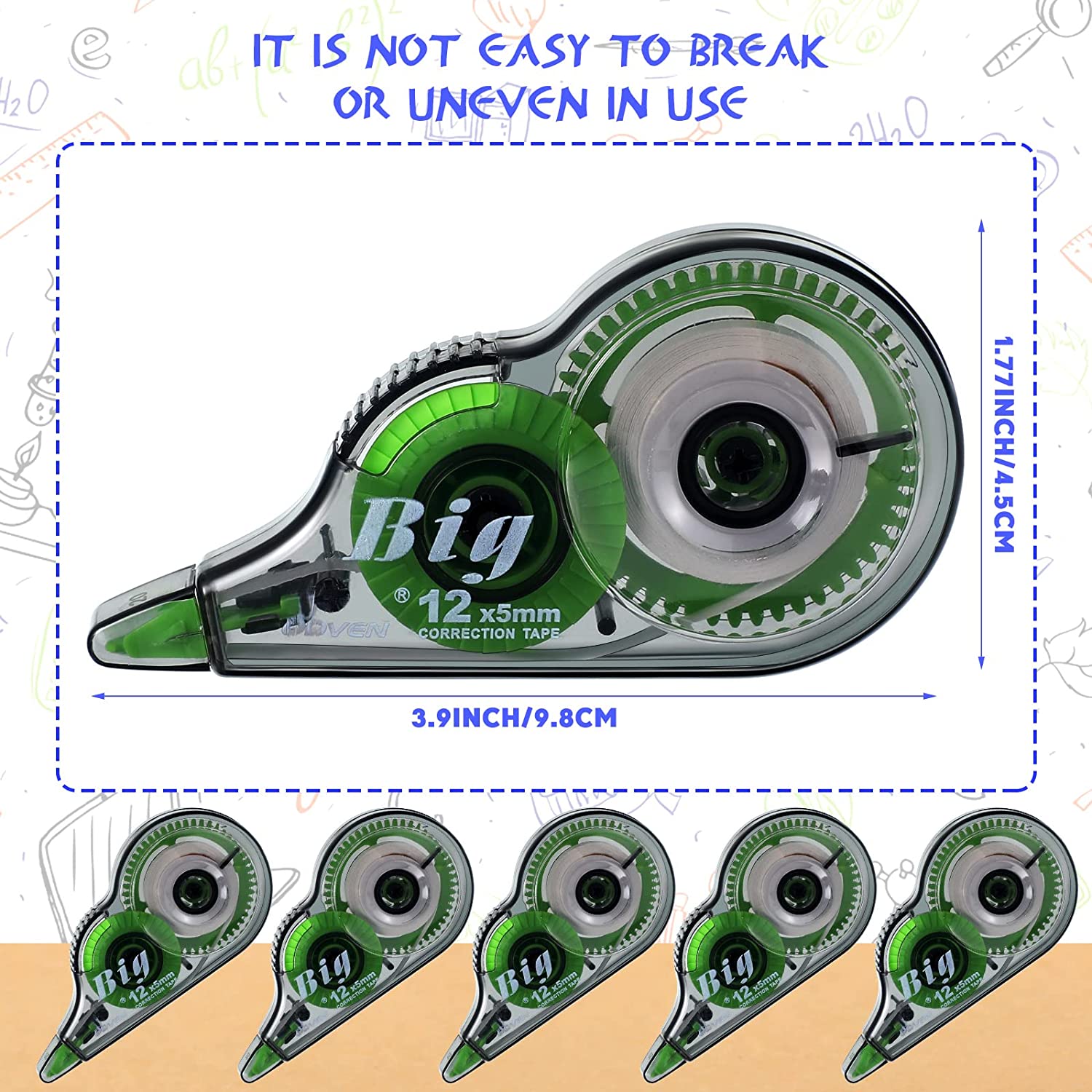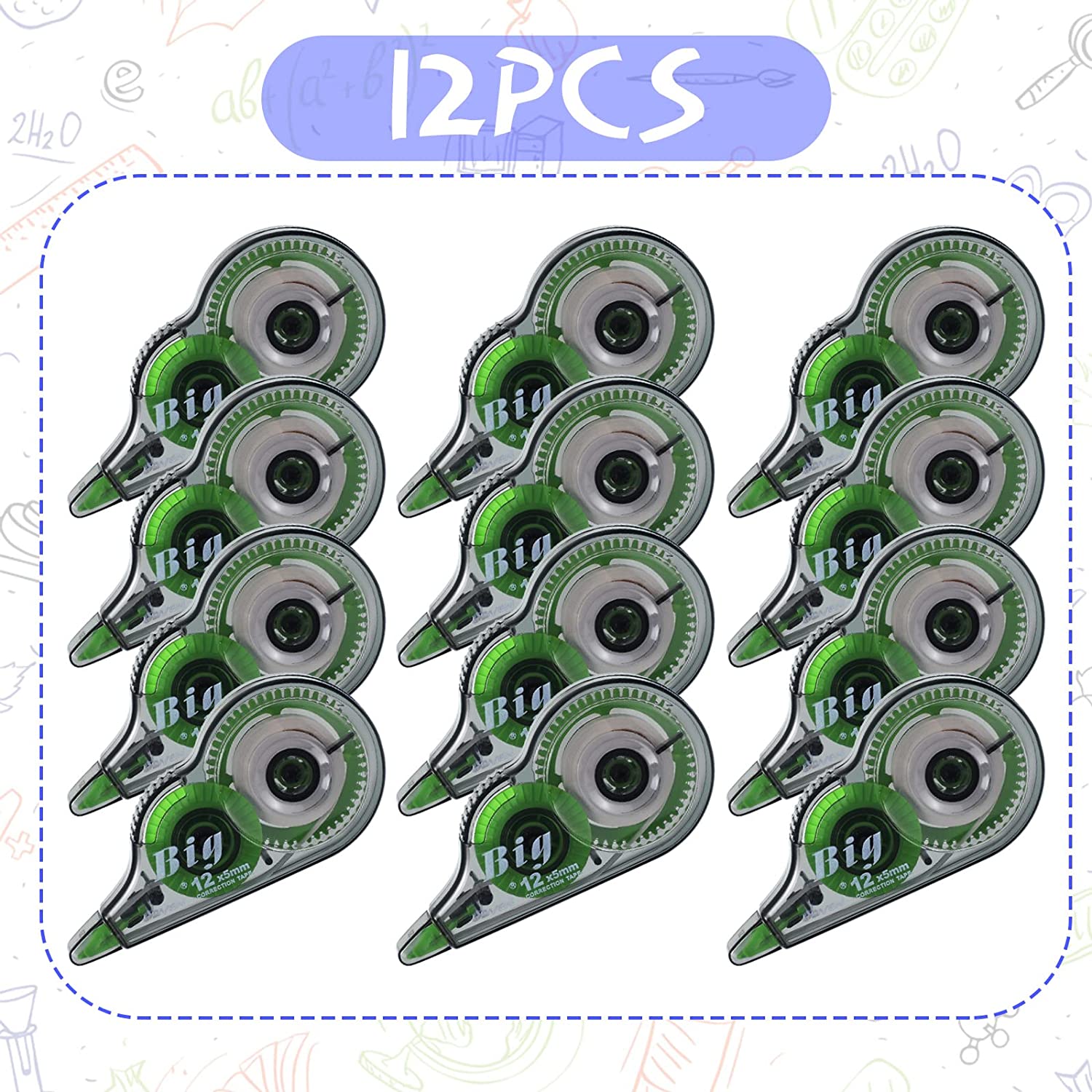 Correction Tape Eraser White out Tape Original Correction Wide Tape Wipe out Easy to Use Applicator Translucent Tape Shows for School Office Note Journal Scrapbooking, 0.2 Inch x 39.4 Feet (12 Pieces)
