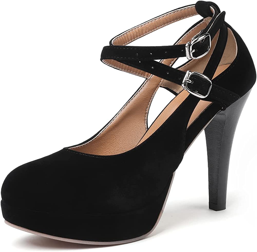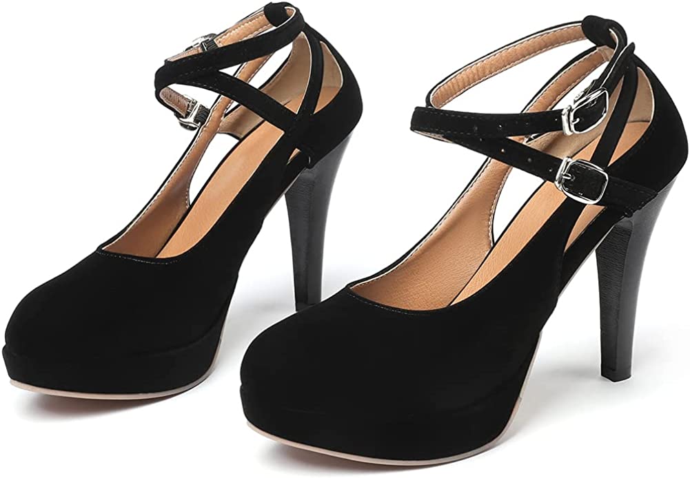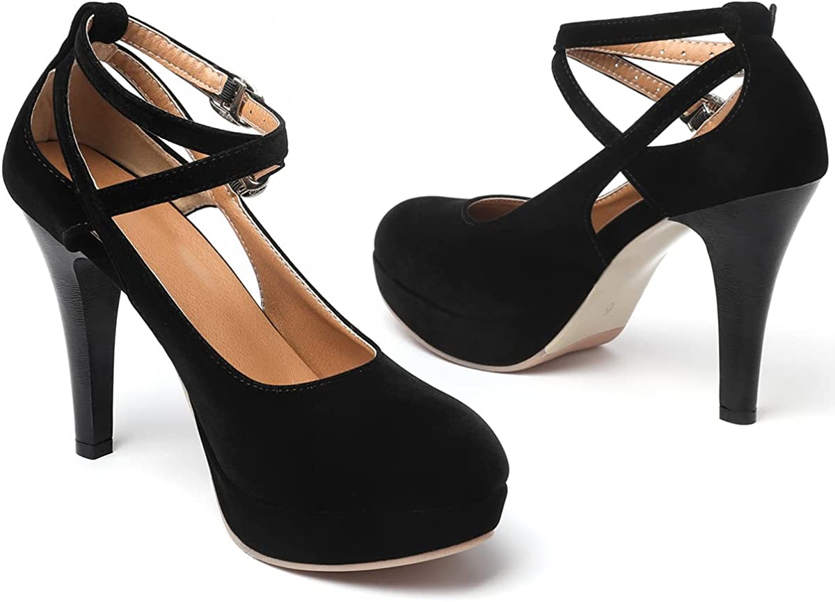 RIBONGZ Black Strappy Heels for Women Closed Toe Platform High Heels Pumps Sexy Summer Comfortable 4 inch Stiletto Heels