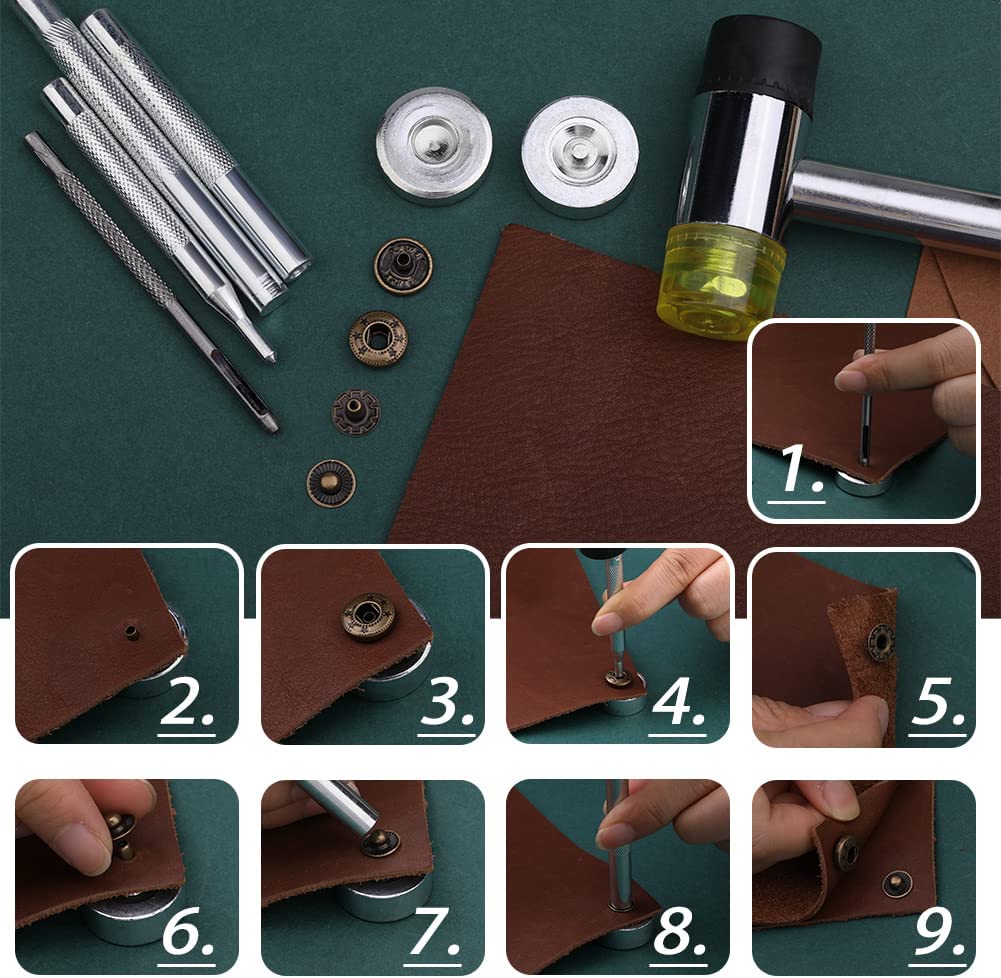 ★Make Good Use: Whether you're an expert or a beginner, this snap and leather rivet set will be perfect for leather fixing works, and take advantage of its accessories, the leather double-sided hammer with a soft and comfortable handle, can save a lot of effort.