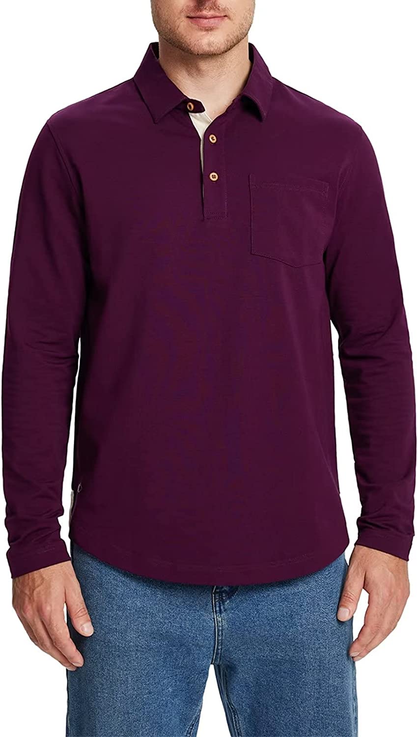 SIZE AND COLOR: Casual mens long sleeve polo shirts, based on classic fit u.s size: S, M, L, XL, XXL, 3XL with various colors: black white grey green navy blue purple that you can have different look everyday.