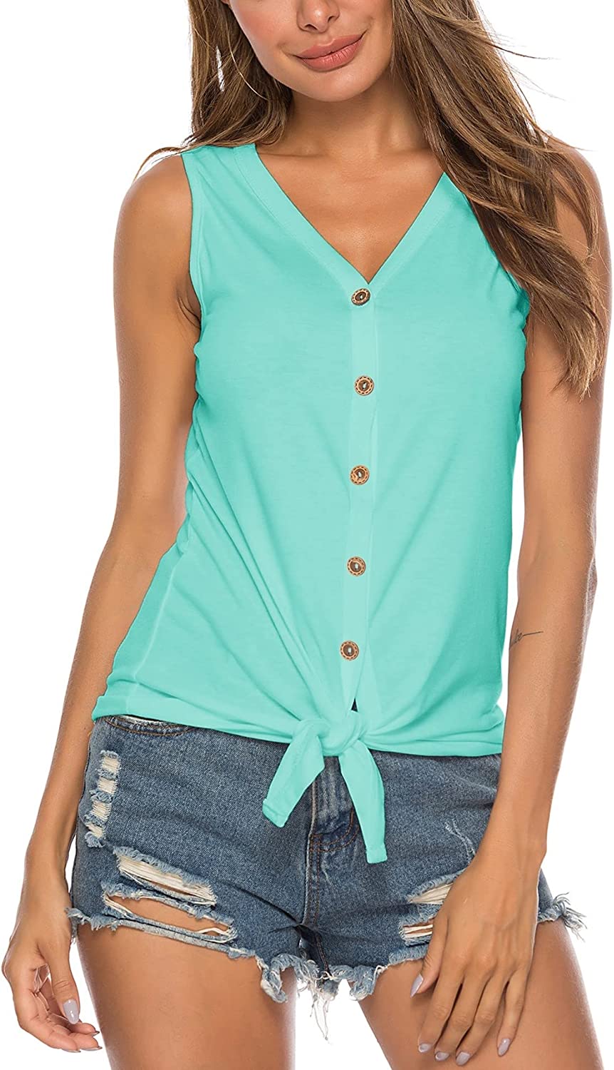 • 【Features】 Sexy V neck, front knot, sleeveless casual womens tops, stretch Shirt, tank blouse with button down design, curved hemline, loose fitting shirt for Ladies