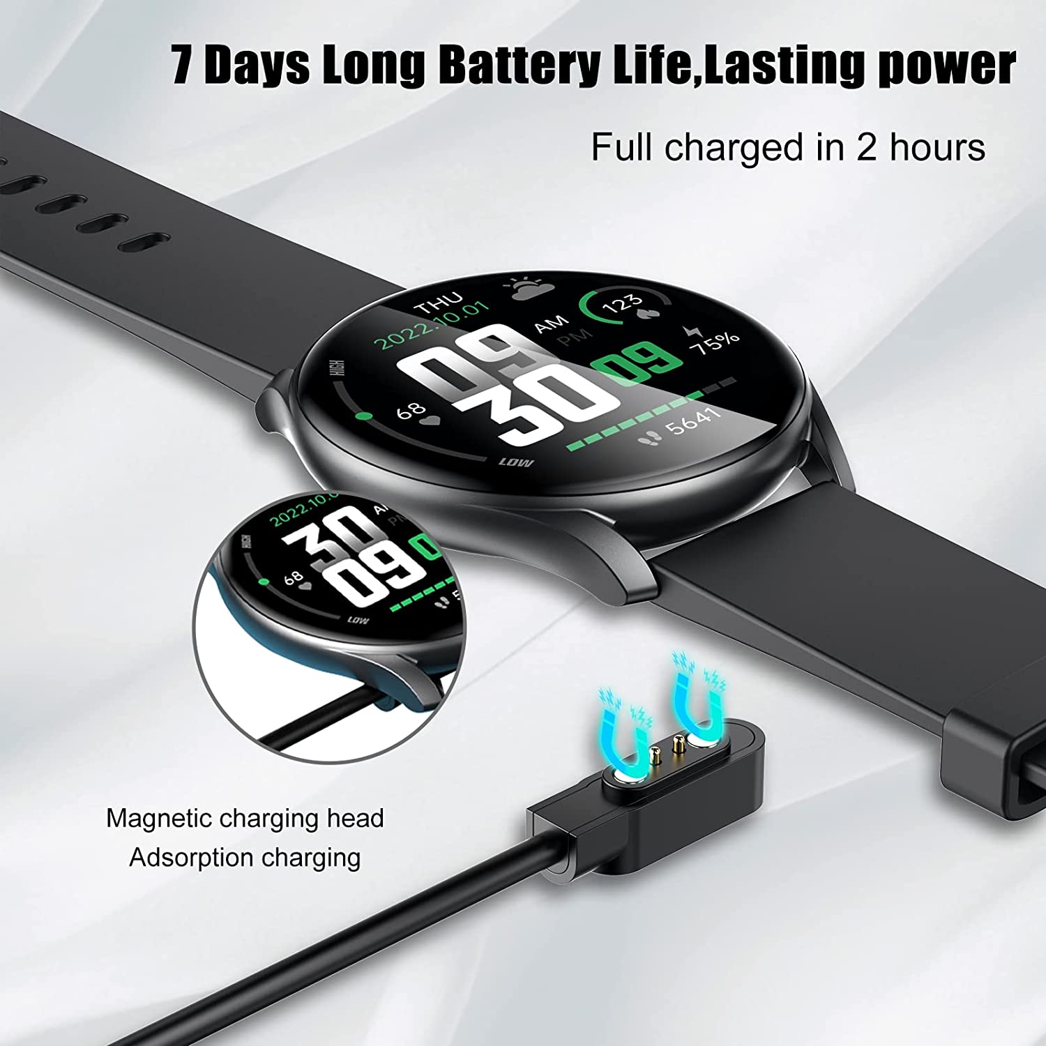 More Than 30 Days Standby Time-Full charge time is about 2 hours, Normal using time is about 6 days, More than 30 days standby time, .Compatible with Android 6.0, iOS 9.0 or above!Get call, Calendar, Text, Alarm and goals to achieve notifications