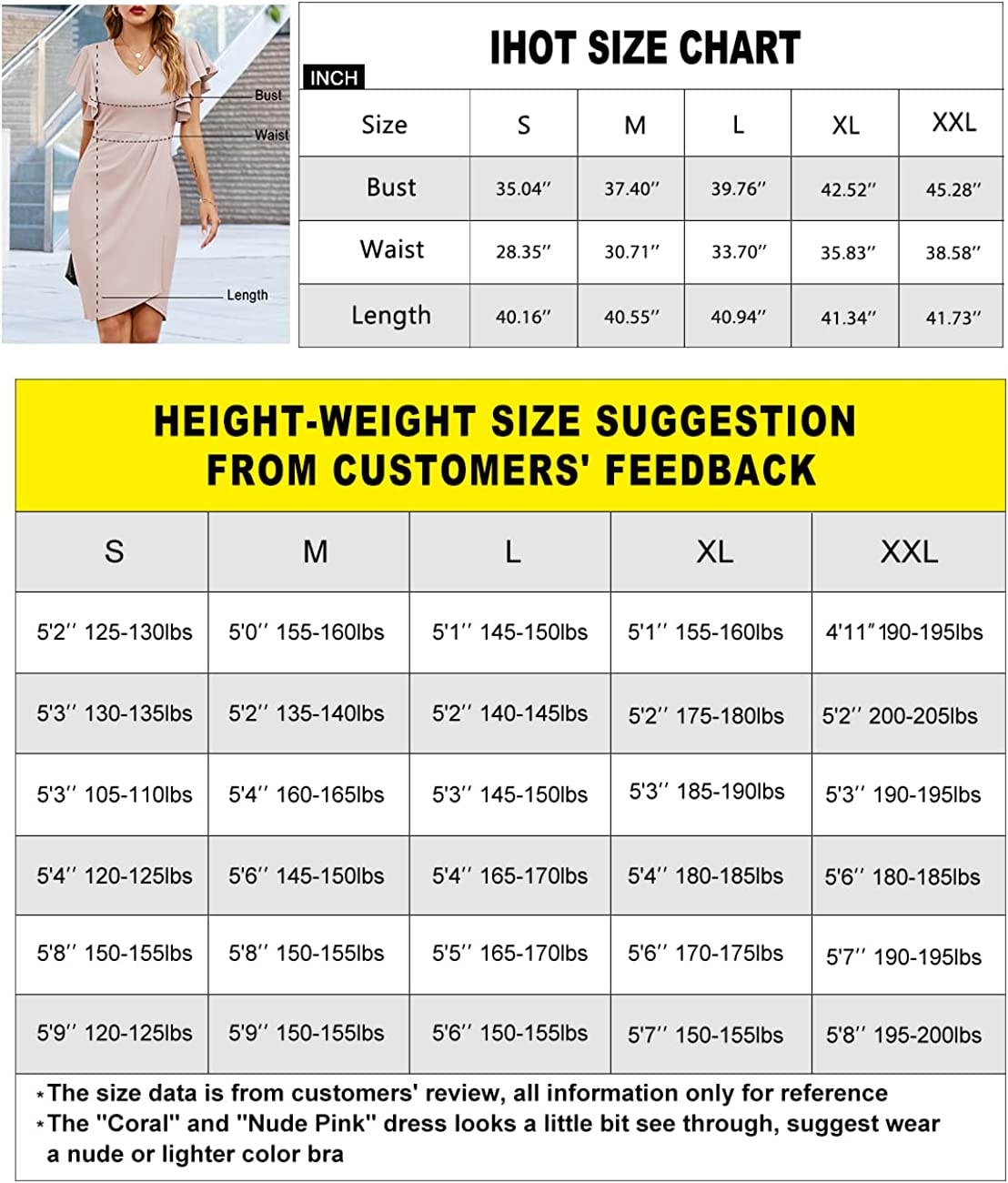 Classic Sheath Cocktail Dresses Style, Super Flattering, Sleeves with Ruffle Design Covers Your Arms Look More Slimmer, Ruched Wrap Around the Waist can Hide Tummy Perfectly, the Cross Hem Highlights Your Sexy Legs.