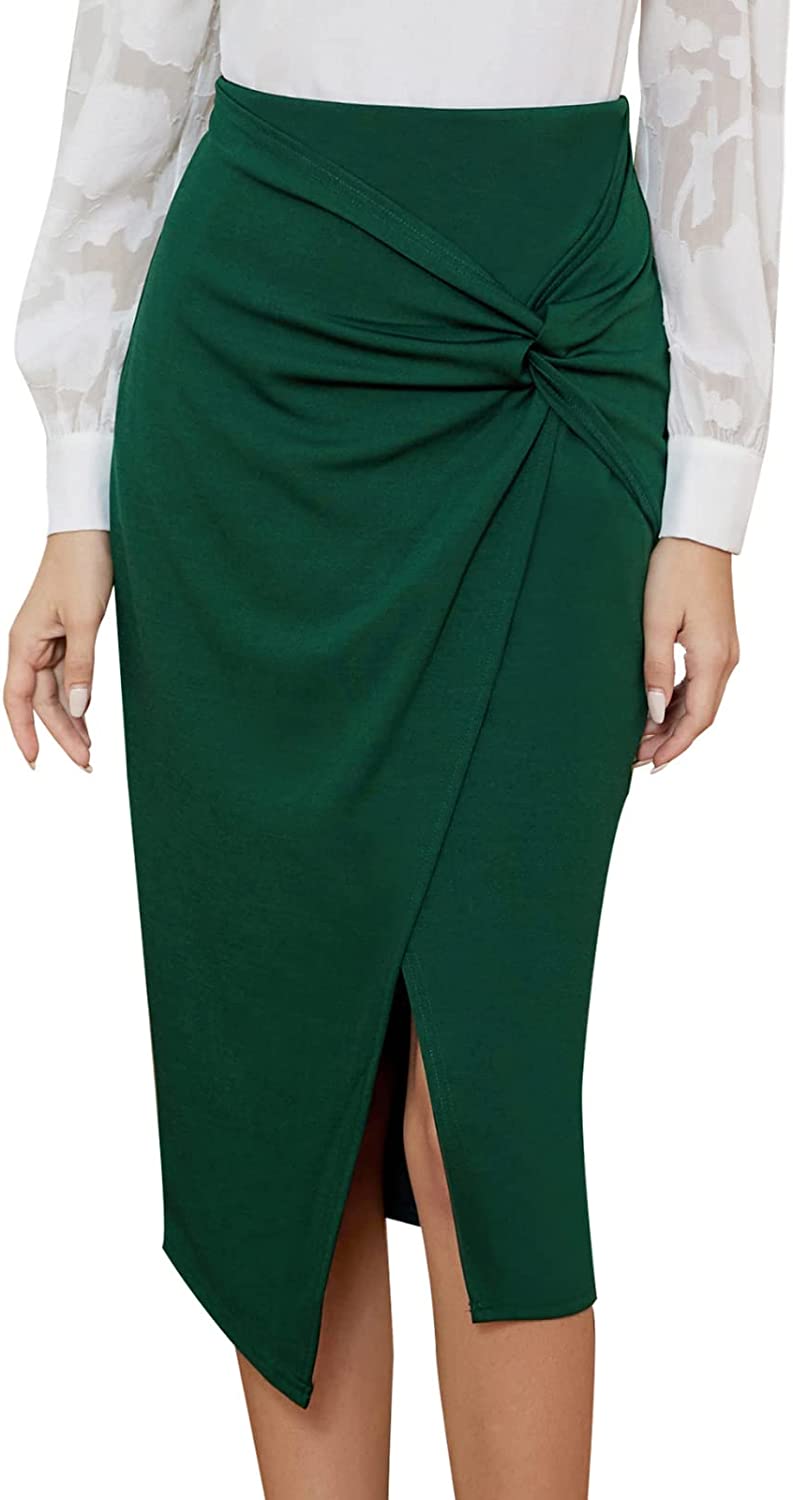 • Features: The high waisted pencil skirt comes with high waisted design, solid color, knee length, knotted front, moderately stretchy and hidden zip at back. The fashion and versatile design is suitable for business and going out, wear this women's pencil skirt to complete a fresh look in daily life
