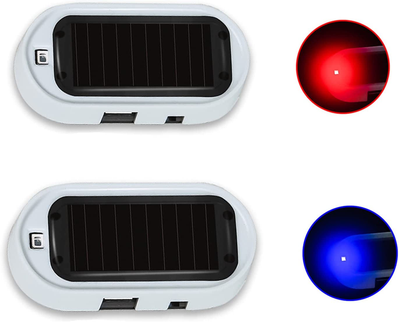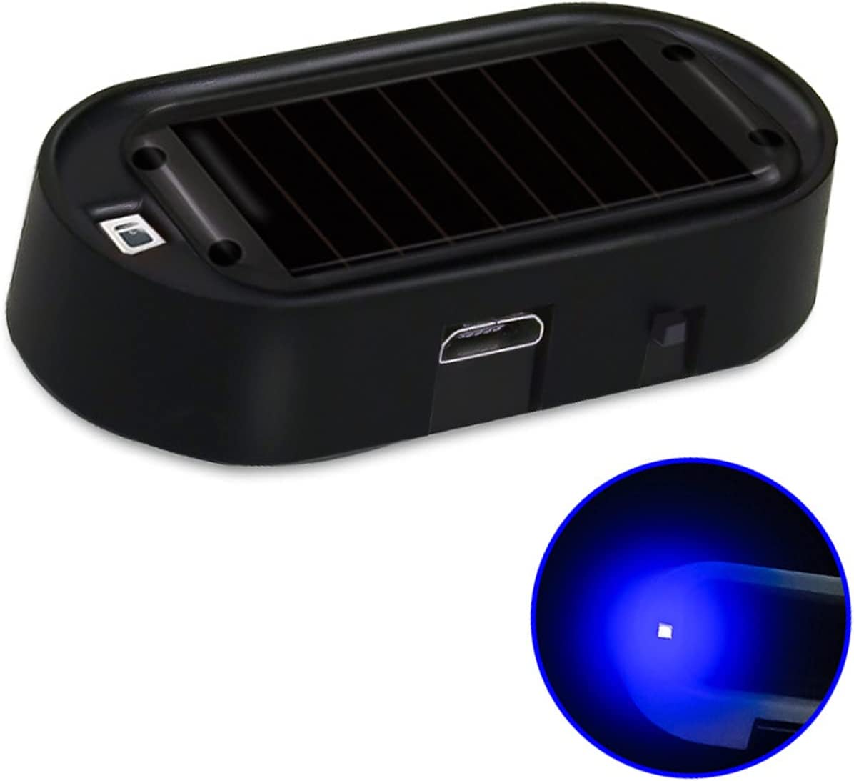 NKIA 2PCS Solar Power Fake Car Alarm LED Light, Simulated Dummy Warning Anti-Theft LED Flashing Security Light, Car Alarm System Lamp with USB Port, Blue & Red Light (Black)