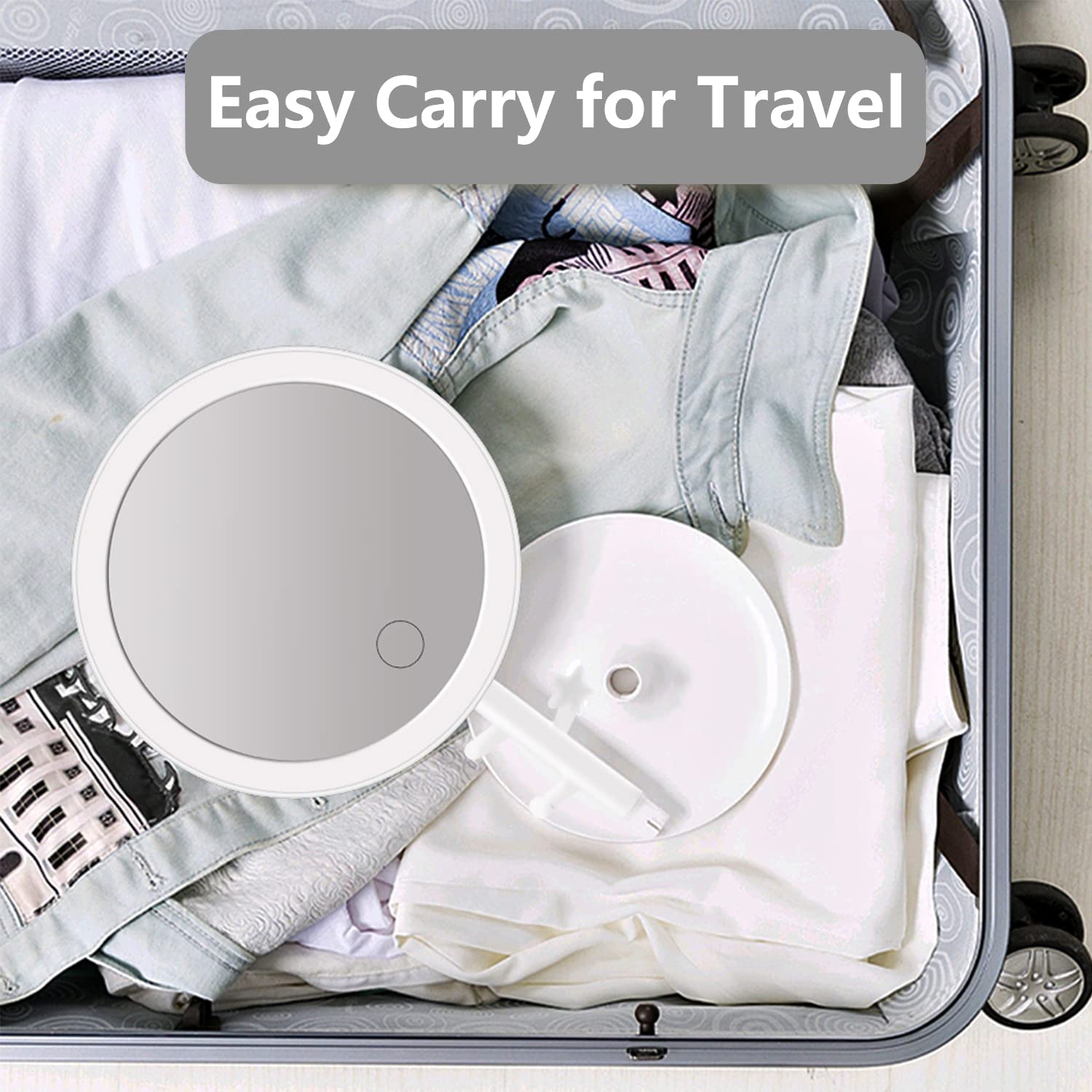 • ✔【Long Working Hours】Rechargeable LED Lighted Mirror, built-in 1200mAh lithium battery, up to 5 hours working time for LED makeup mirrors at maximum brightness. Micro USB charging, cable included. It not only can be used as a mirror, but also as a night light