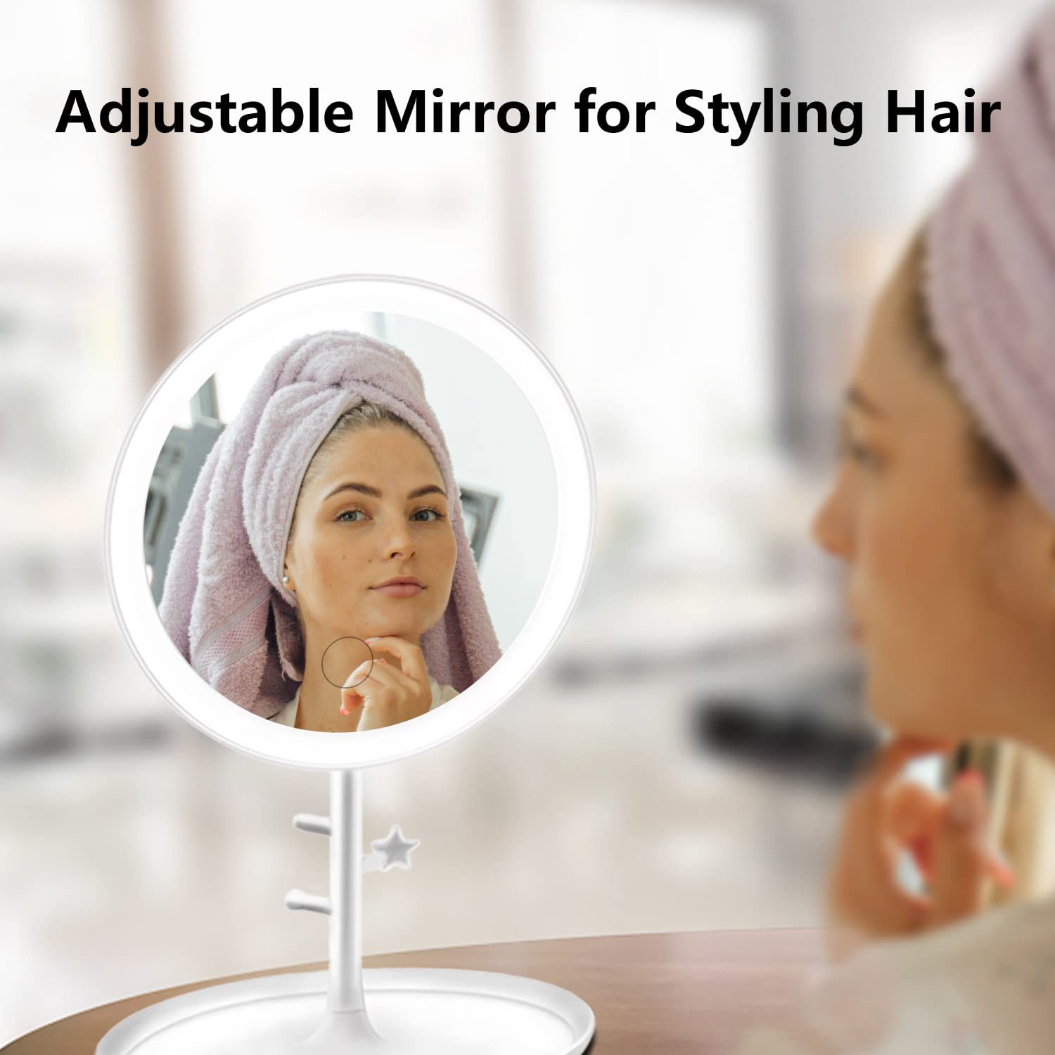 • ✔【3 Color Light Modes】LED makeup mirror dimmable brightness: White - Warm - Nature to meet different makeup occasions. Has 25pcs energy-efficient LED lamp beads. The soft and bright light provides you with bright and clear reflections, which will not harm your eyes or produce glare