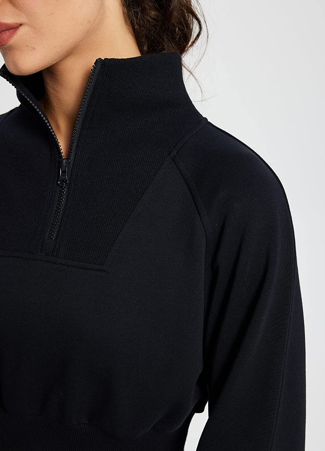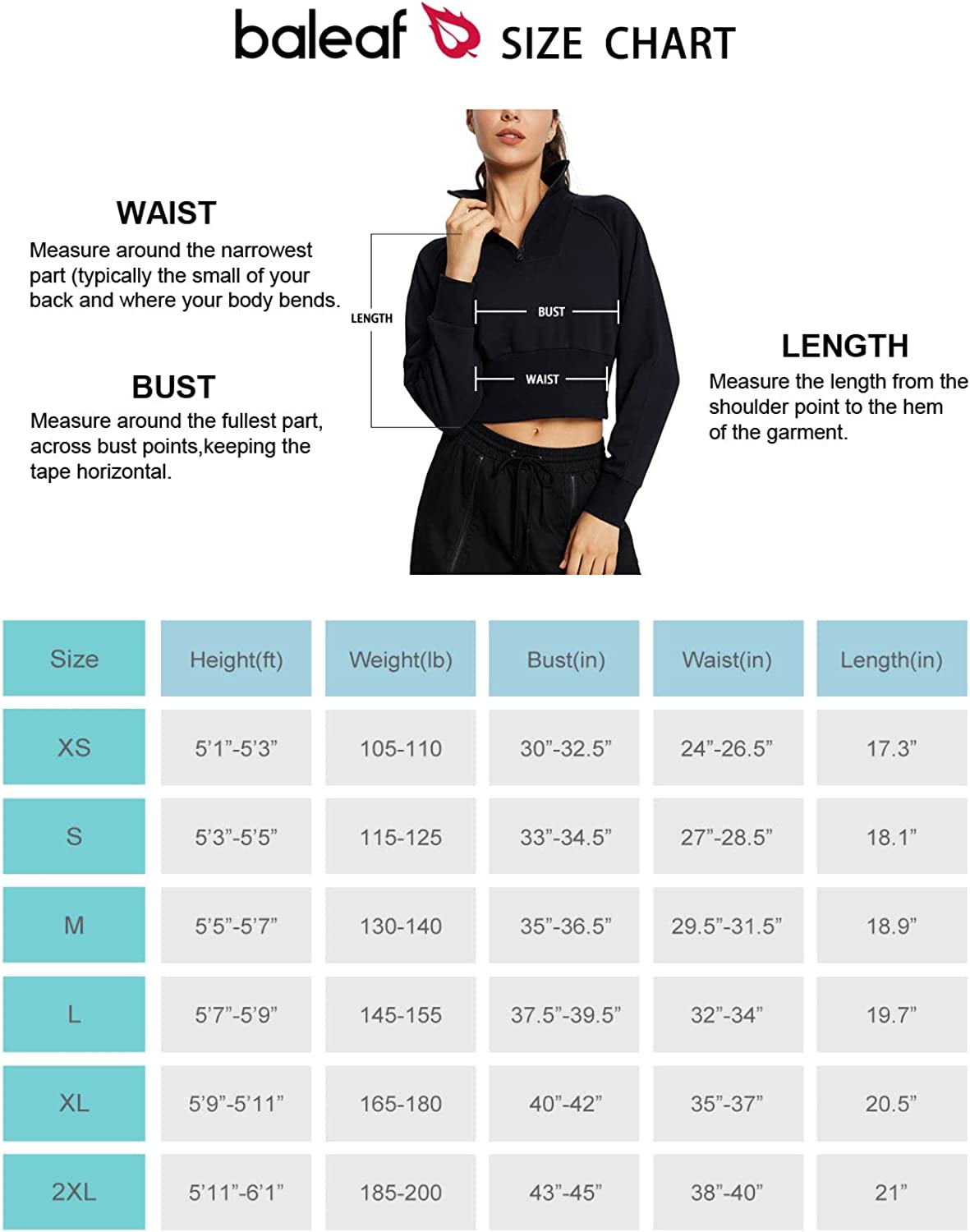 BALEAF Women's Half Zip Cropped Sweatshirt High Neck Long Sleeve Crop Pullover Athletic Ribbed Corset Hems Cozy