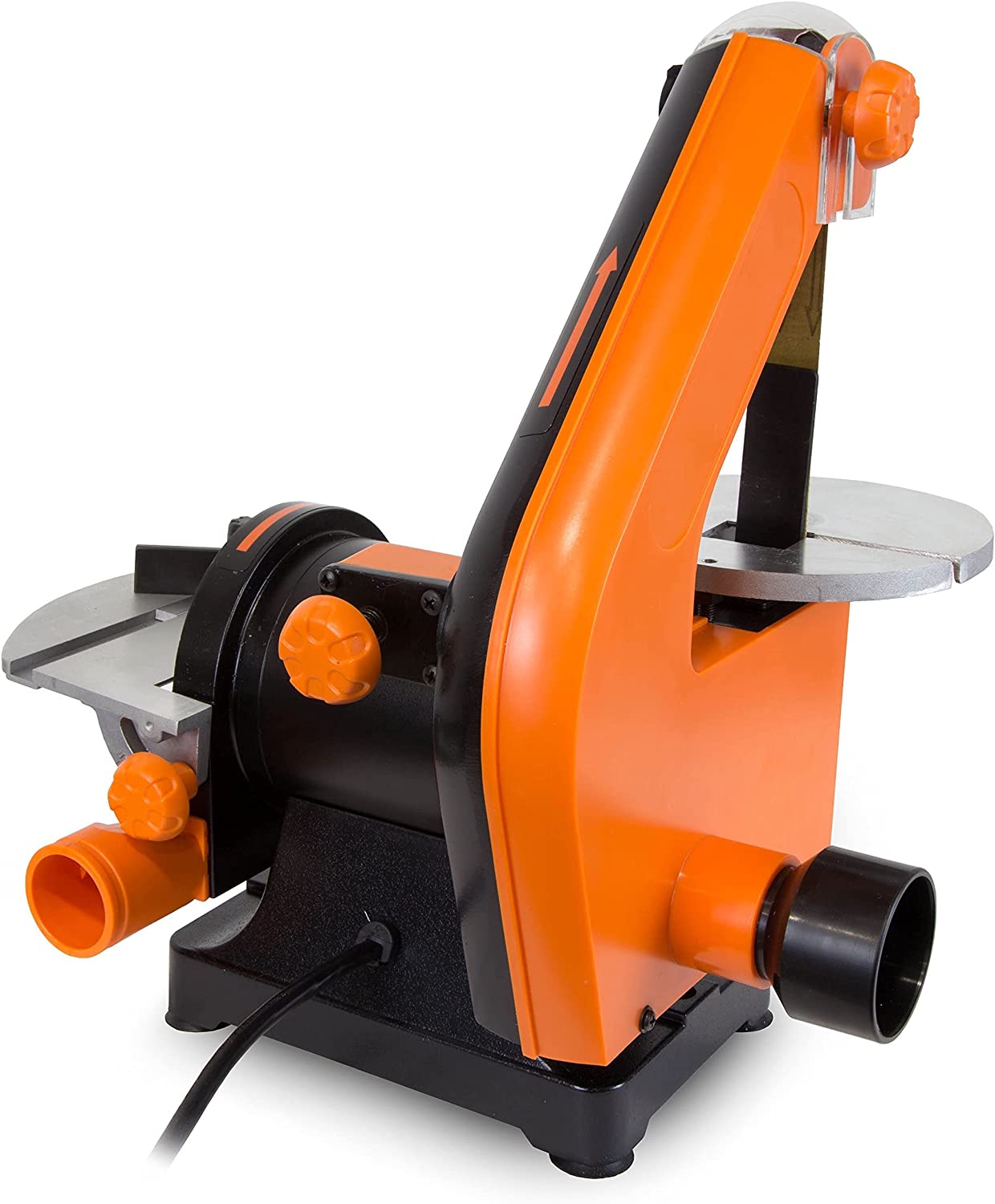 • Two-in-one sanding machine includes both a 1-by-30 inch belt and a 5-inch disc