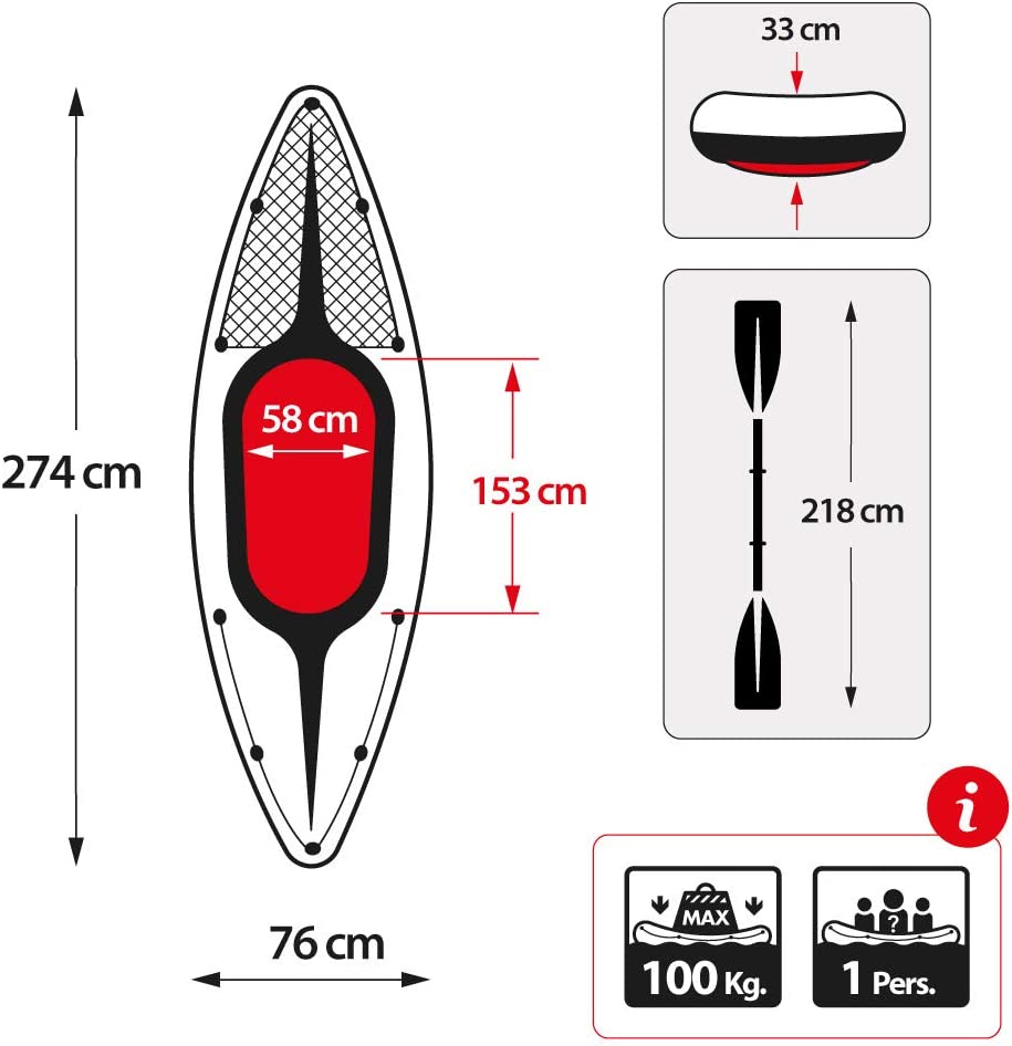 • Cargo net to store extra gear, and grab line on both ends of kayak; inflatable seat with backrest