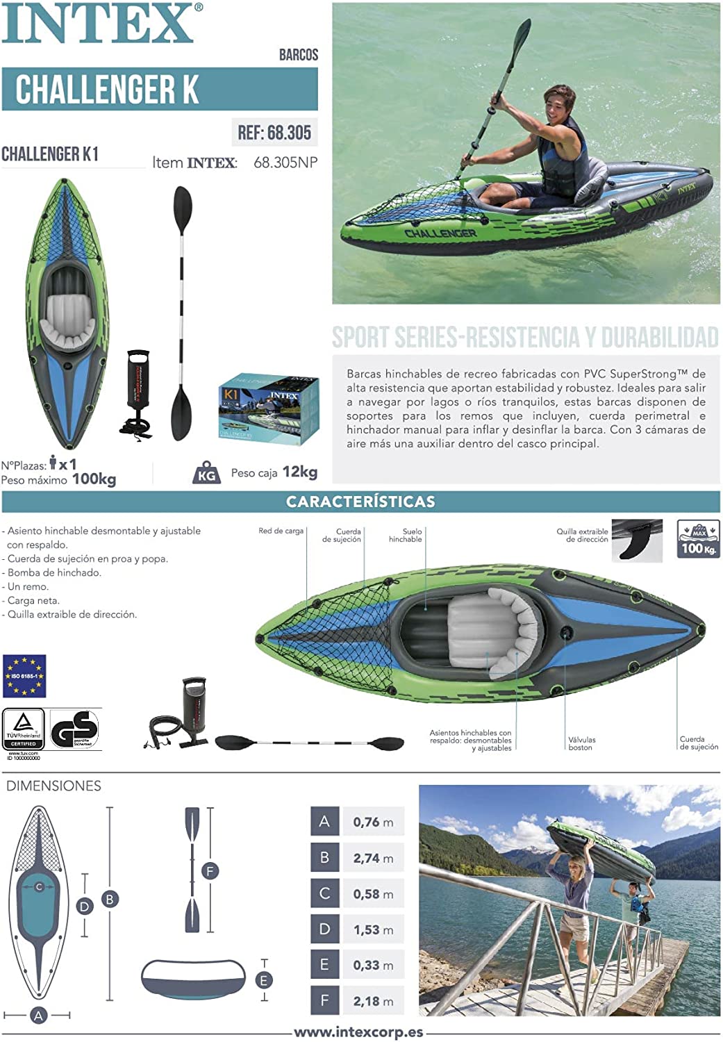 Intex Challenger Kayak, Inflatable Kayak Set with Aluminum Oars and High Output Air-Pump
