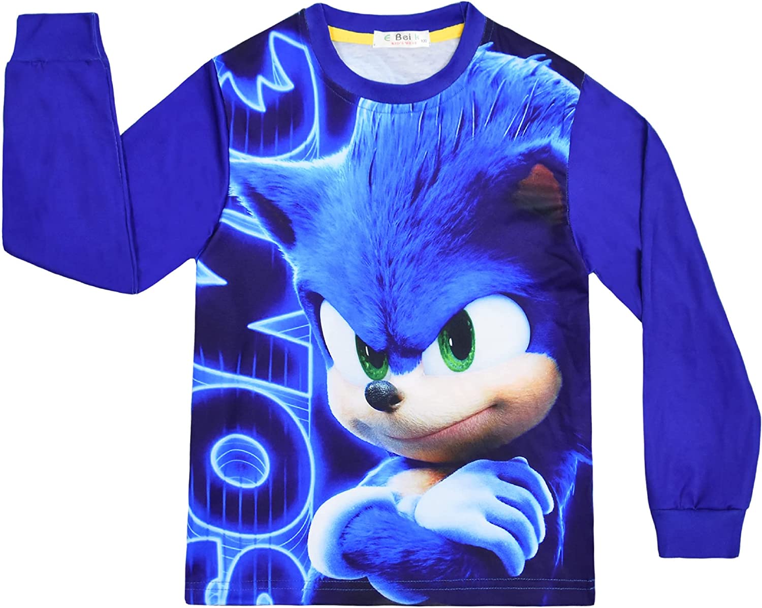 Boys Pajamas Sonic 2 Pieces Pjs Set Kids Nightgown Cartoon Game Sleepwear Child Loungewear Blue Comfortable Pyjamas Set