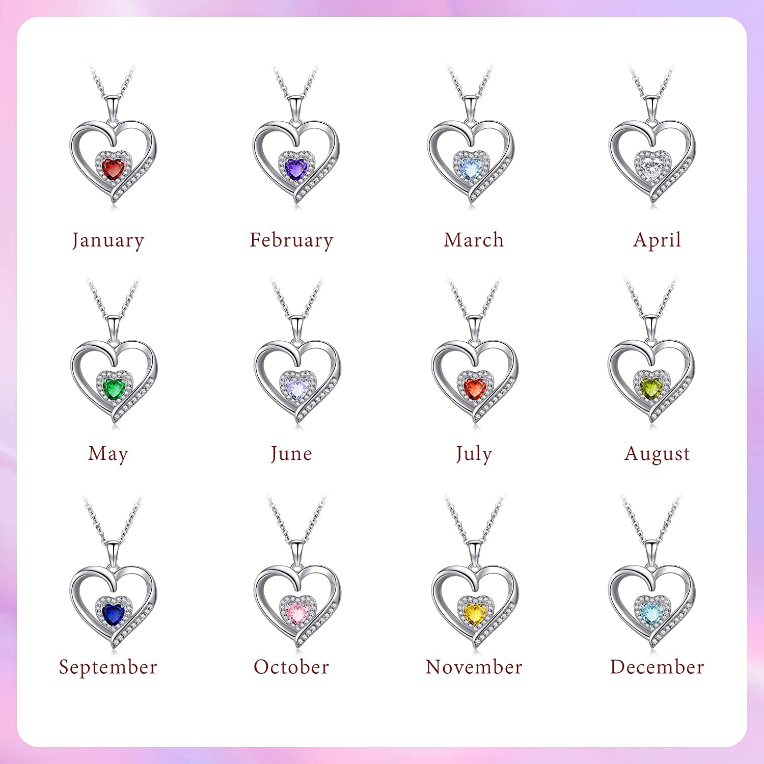 BIRTHSTONE NECKLACE: The 12 colors of birthstones representing 12 months, you can choose the different birthstone necklace as perfect Birthday gifts, Valentine’s Day gifts, Christmas gifts, wedding gifts, anniversary gifts for her/wife/girlfriend/women.