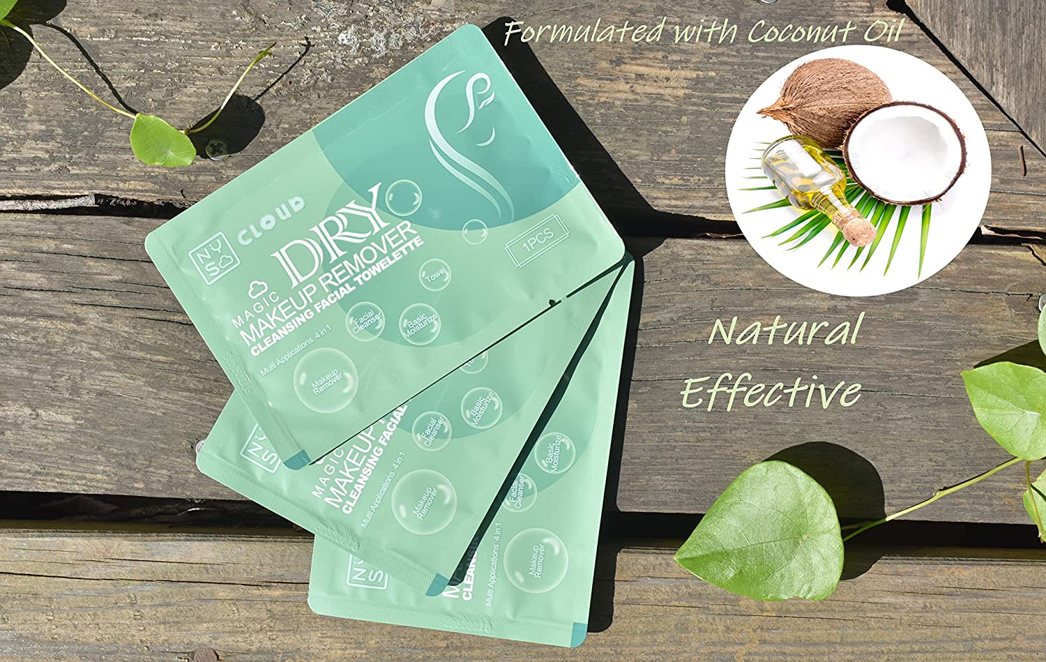 DAILY cleansing facial towelettes for all skin types, infused with coconut oil to achieve superior makeup removal and cleansing effect, easily remove makeup impurities dirt, oil even waterproof mascara. Meanwhile it’s also formulated with lots of nature’s essence to nourish the skin. *Care for your skin*