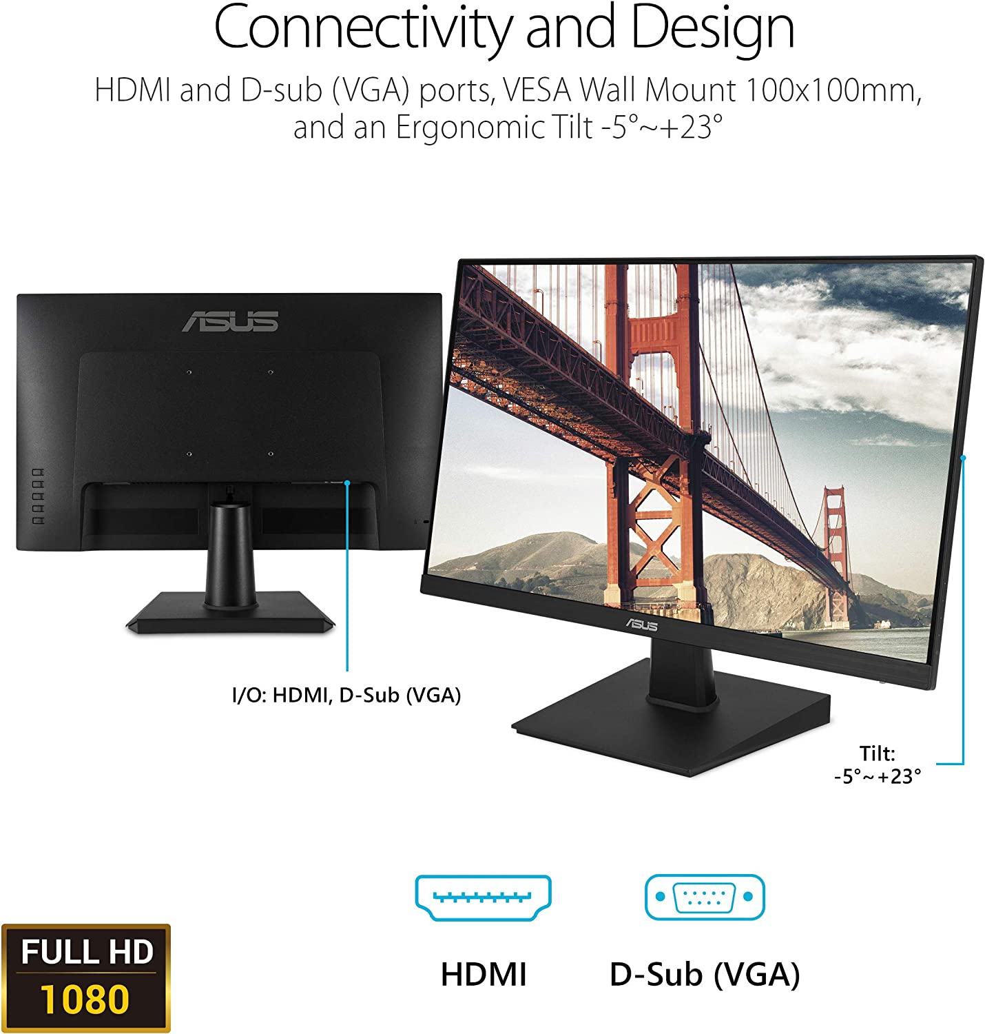 The frameless Asus VA27EHE eye Care monitor features a 27-inch IPS panel and 178° wide viewing angle For a vivid image quality with minimal color shifeet Eliminate tracing and ensure crisp and clear video playback with its featured Adaptive-Sync technology and refresh rate of up to 75Hz.