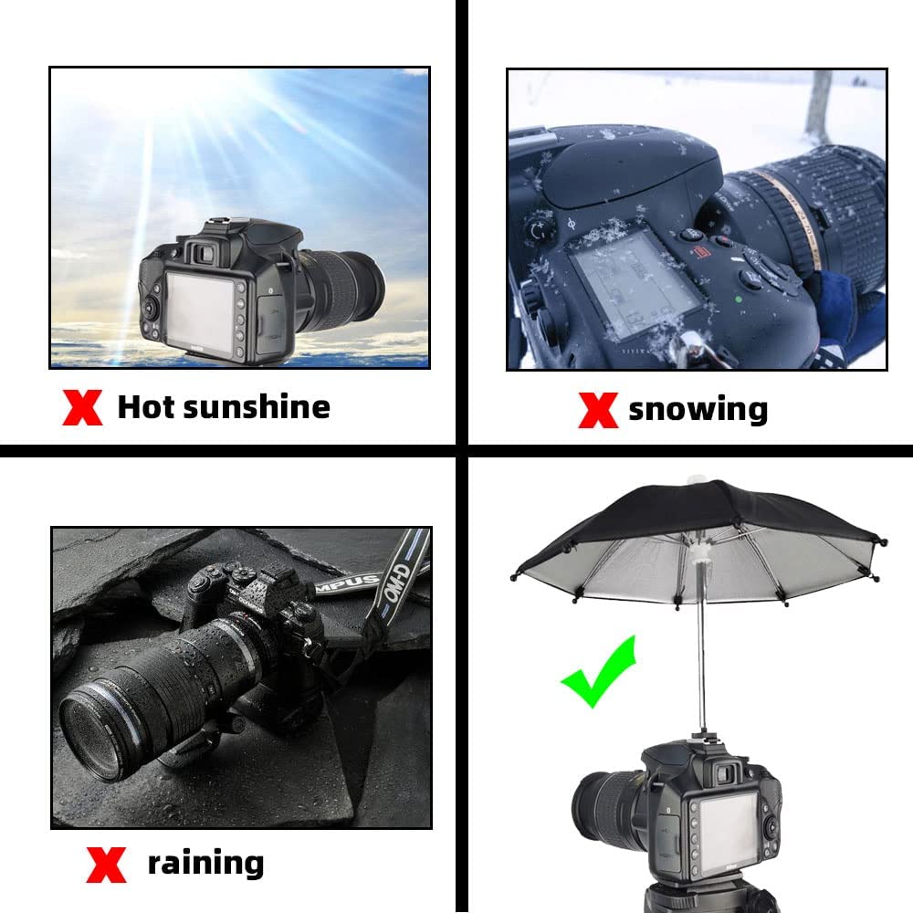 • 【ATTENTIVE DESIGN】:ZANOLY Camera Umbralla is Designed to protect your camera from rain(snow,hot sunshine ,birds poop,etc.)