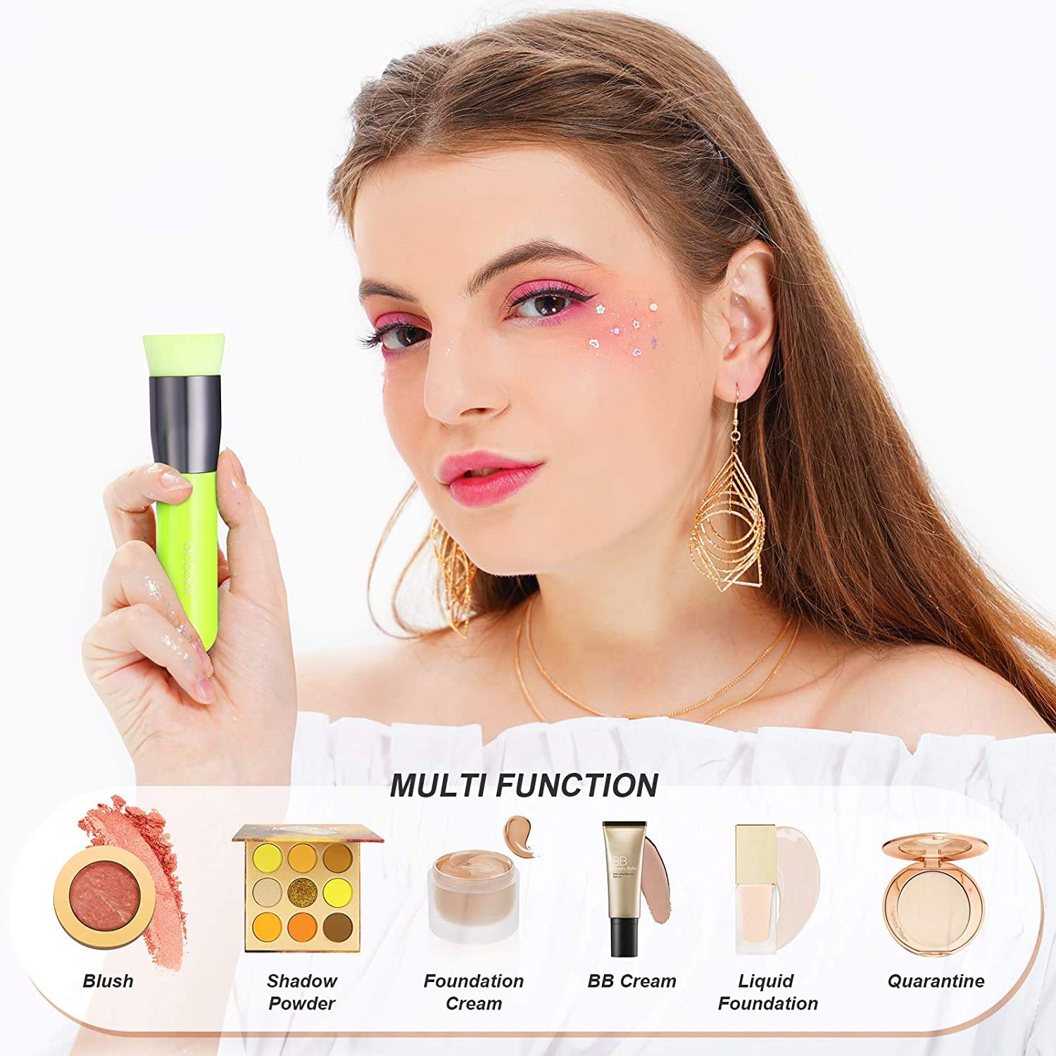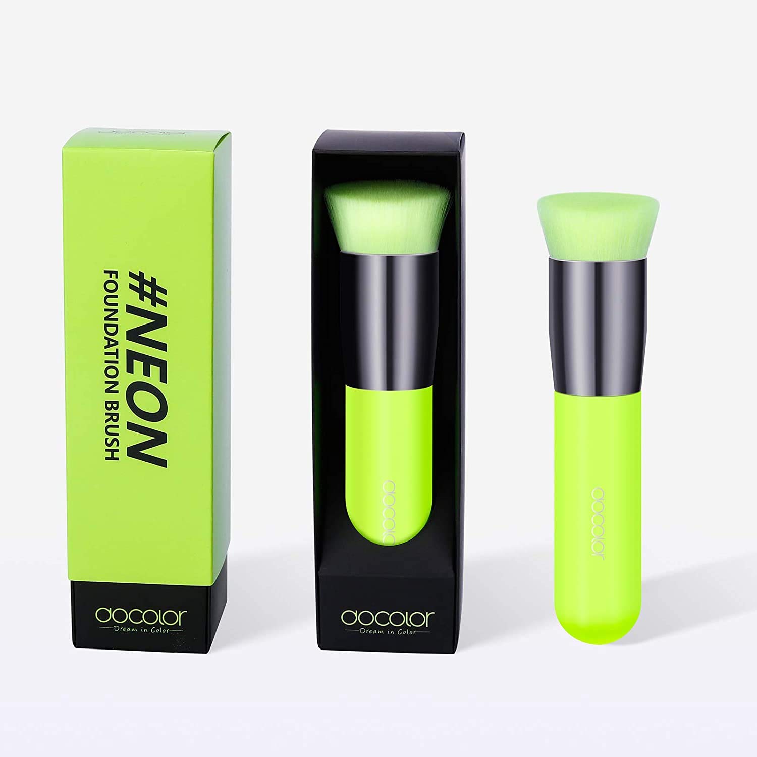 Foundation Brush Docolor Flat Top Kabuki Foundation Professional Synthetic Makeup Brush Perfect for Blending Liquid Cream or Powder Cosmetics Full Coverage Face & Body Brush Premium Makeup Tools, Neon