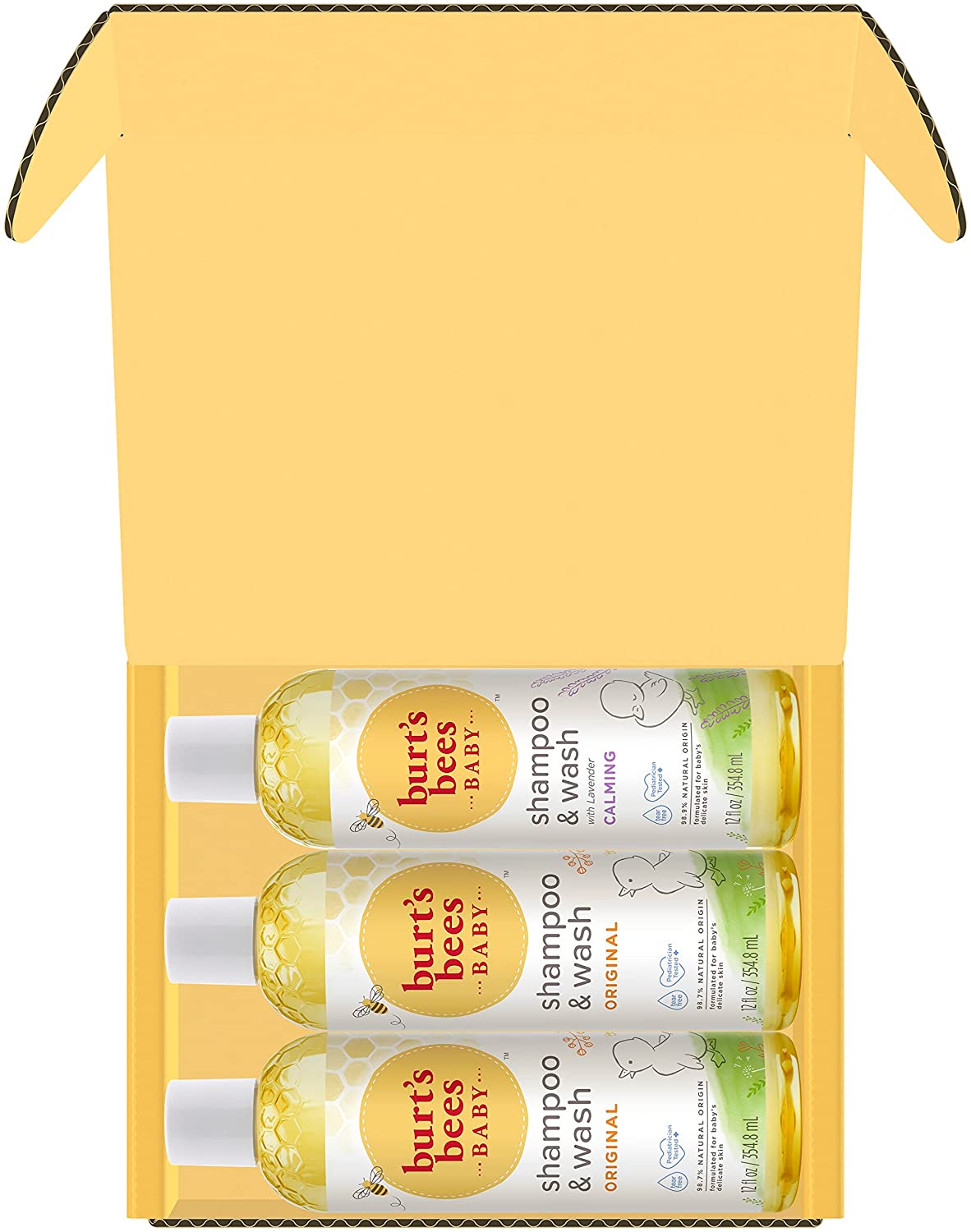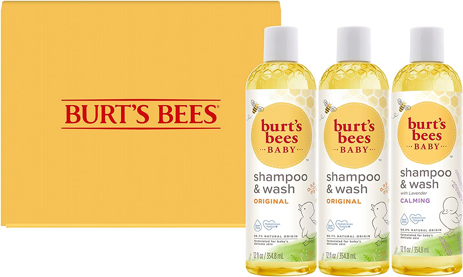 Burt's Bees Baby Shampoo and Wash 3-Pack, 2 Original and 1 Calming with Lavender, 12 Fl Oz Each