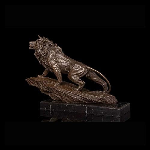 CZDYUF Antique Bronze Casting Animal Statue Sculpture Wild Animal Roaring Lion Figurines for Indoor Decoration