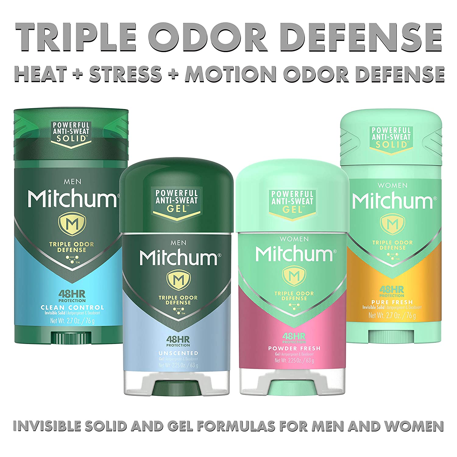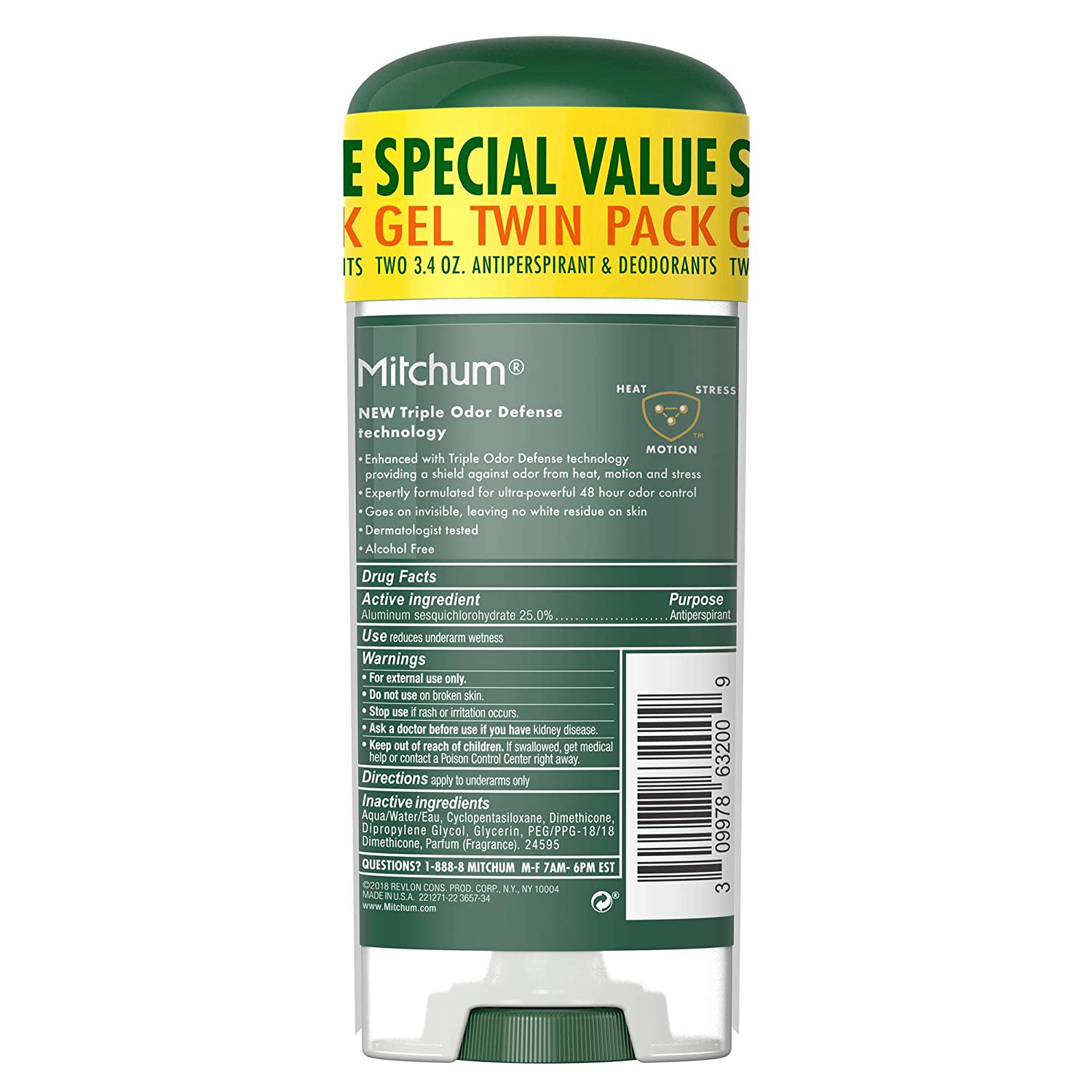 Men's Deodorant by Mitchum, Antiperspirant, Triple Odor Defense Gel Stick, 48 Hr Protection, Dermatologist Tested, Alcohol Free, Unscented, 3.4 Oz (Pack of 2)