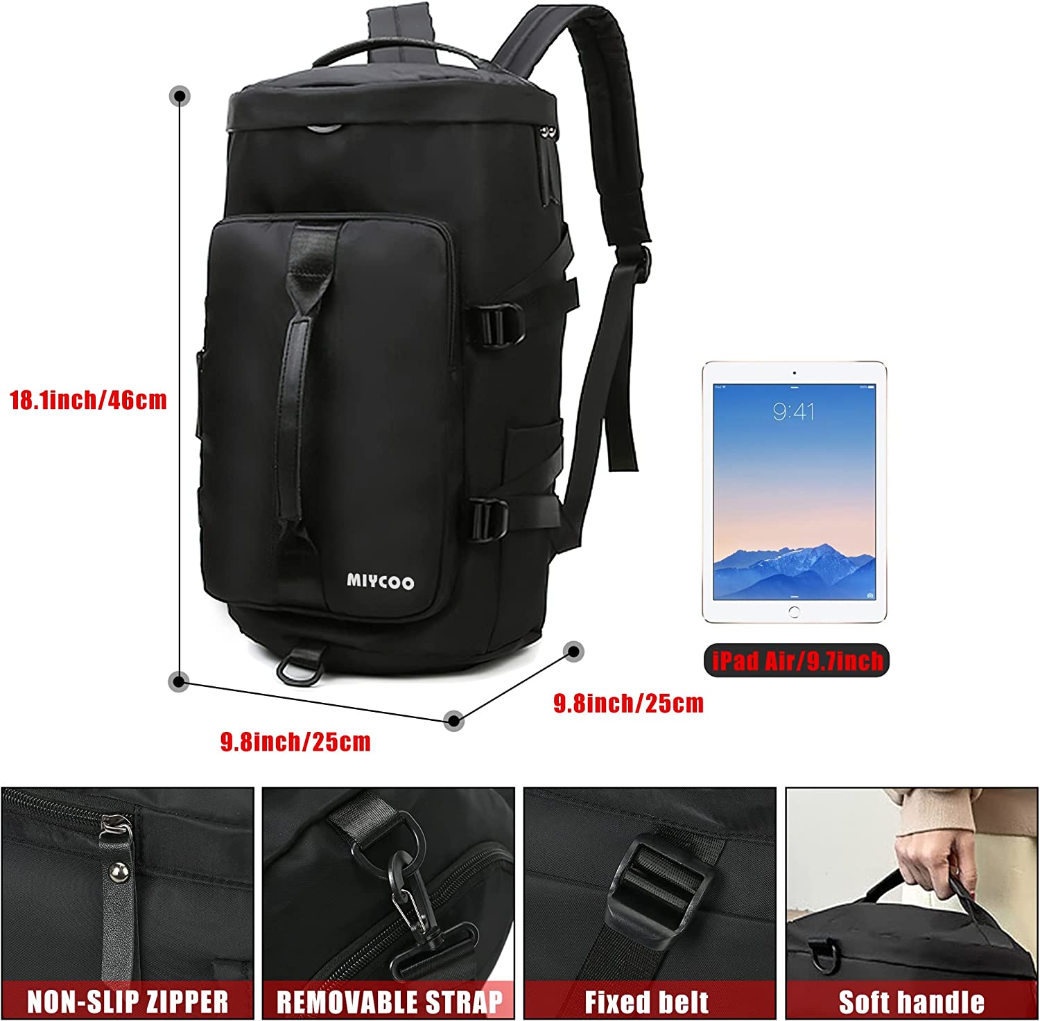 • 【3 Carrying Options】: This gym bag's shoulder straps can be hidden. With a removable crossbody shoulder strap, so you can switch the way you use it: as a backpack, as a crossbody travel bag, or as a handbag.