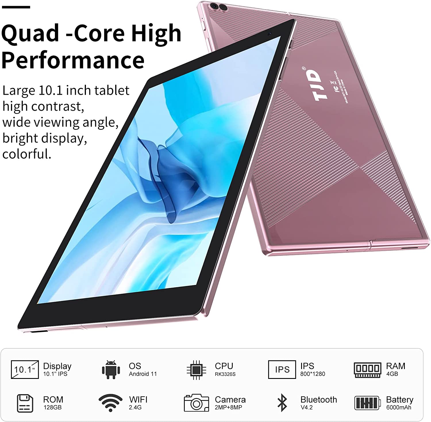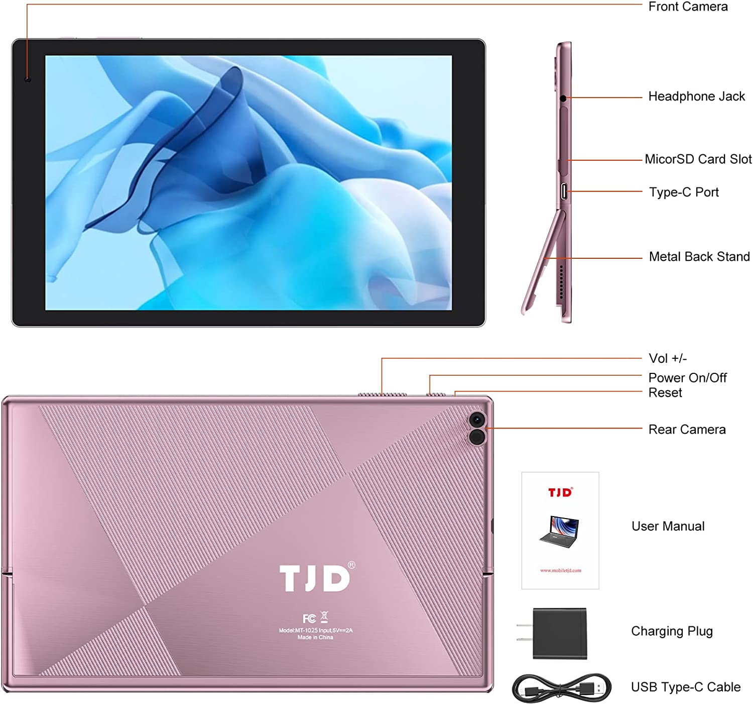 Patented Stand Design - TJD Tablet android has a unique patented metal back stand design, in case you video, writing, cooking stand at will, Better increase the use experience. Tempered film is installed on the tablet. Its with built in 2.4G/5G WiFi6, Bluetooth 5.0, Google Play is preinstalled, Enjoy your favorite apps like Netflix, Twitter, Instagram, Tiktok, etc. as much as you want.