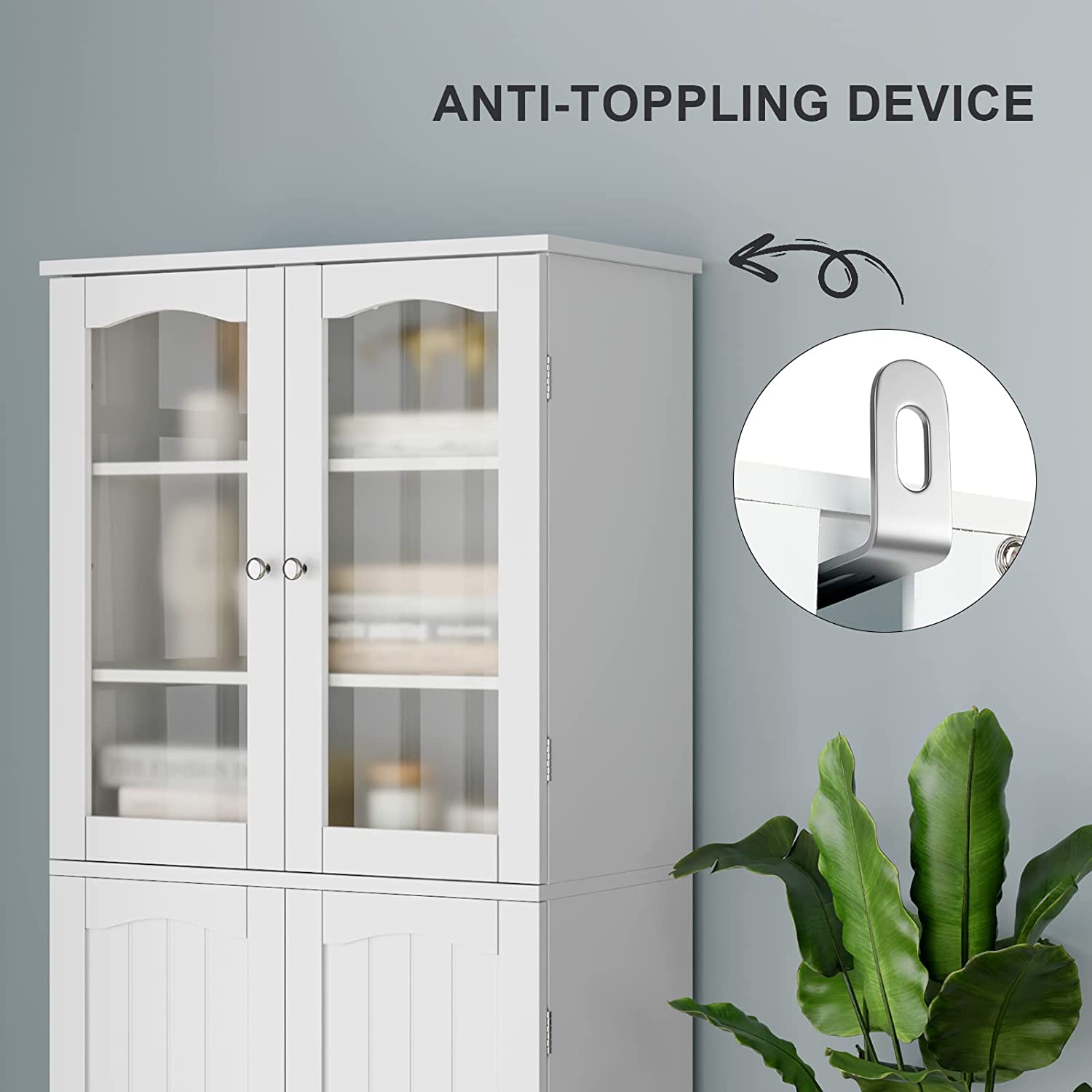 【Long-lasting Materials】Constructed from high-quality MDF, the tall pantry with a reinforced wall attachment for stability. With premium white paint craftsmanship, the surface is smooth, waterproof and scratch resistant. Product dimensions: 23.6"L x 12.5" D x 63.5" H
