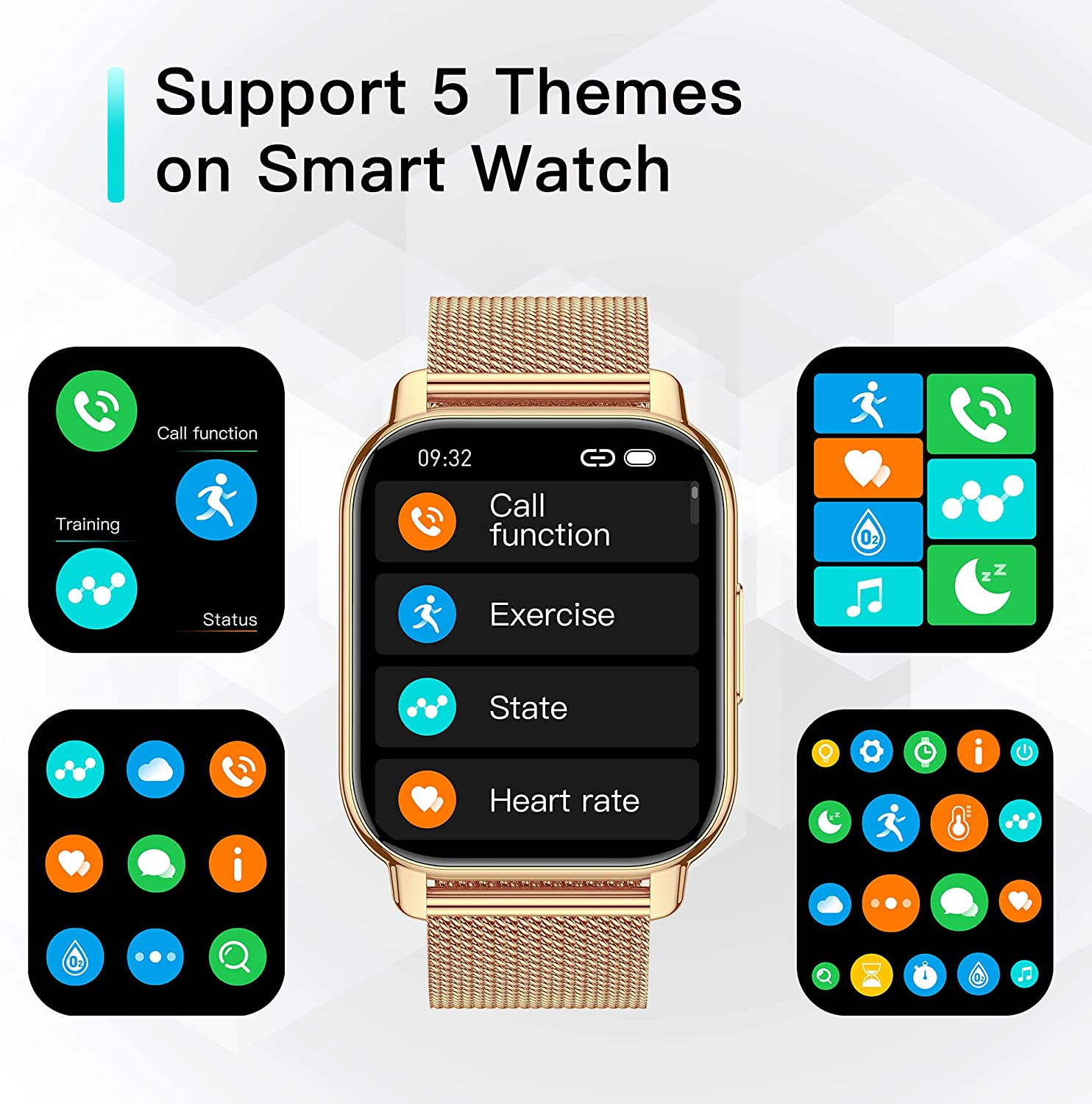 Watch Theme: The watch supports 5 theme modes: array, square, card, honeycomb, and nine grid. You can choose one according to your preference.