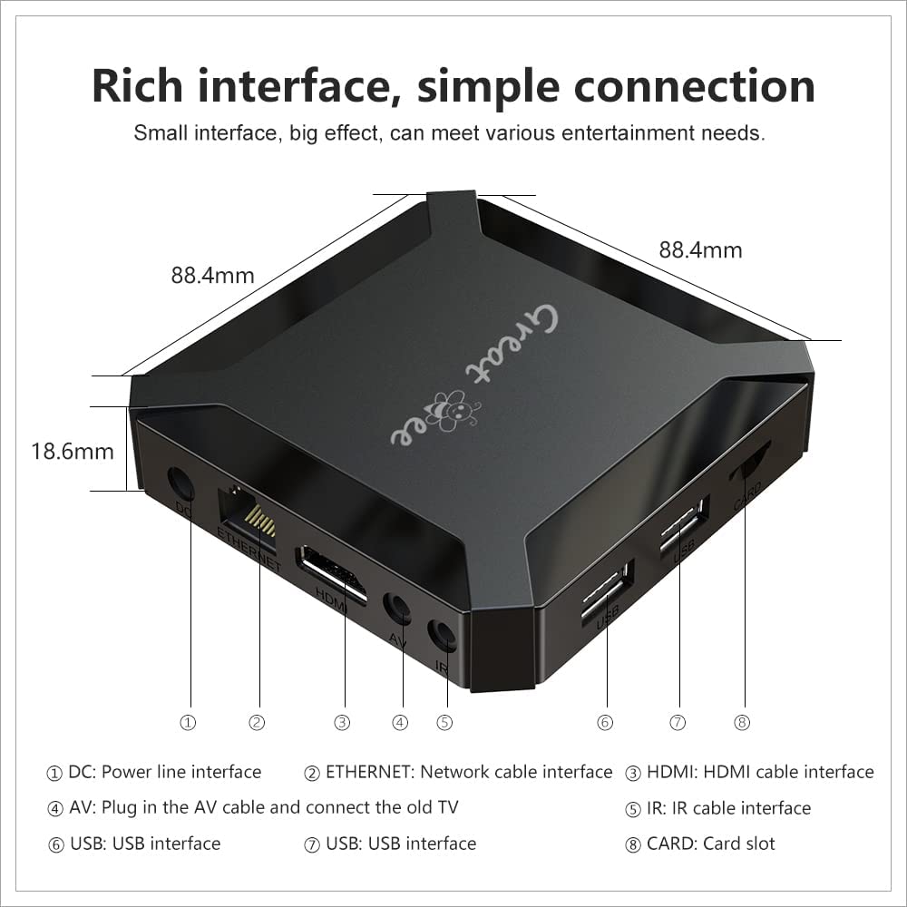 • 【Android 10.0 and Powerful Allwinner H313 Chipset】Great Bee Arabic TV Box has android 10.0 system and powered by quad core allwinner H313 chipset, which makes it more stable. CPU: Quad Core Allwinner H313 1G 8G, Support Broswer/SKype/Chromecast/Email/Movie/Youtube etc Apk in the tv box