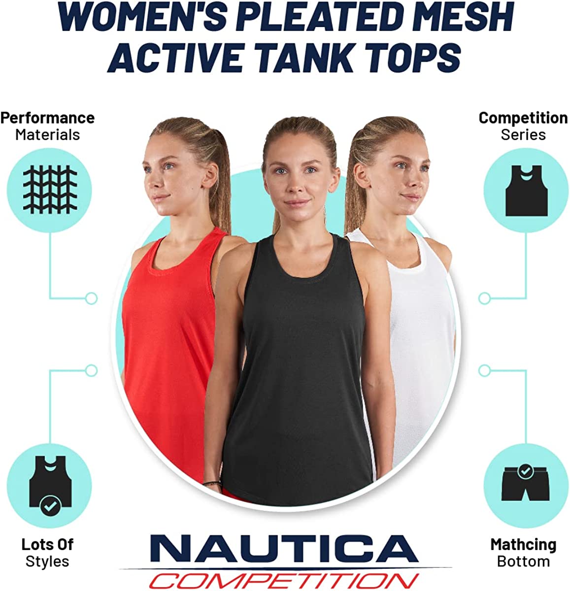 LOTS OF STYLES - The Nautica Competition Series has a lady’s tank top for everyone! Choose from our 2 pack of keyhole tanks, striped tanks, or our mesh jersey pleat back workout tanks for women, our cute twist front tanks, and our popular midriff athletic tank tops