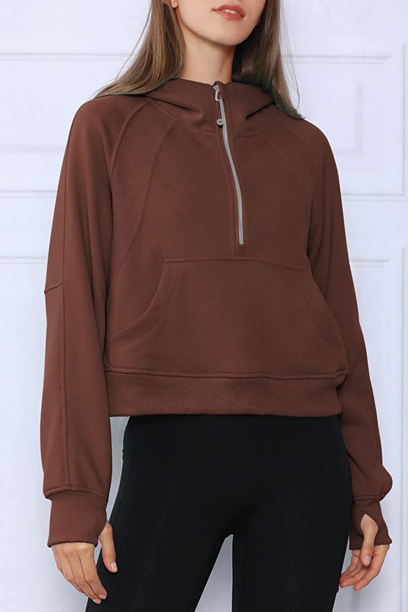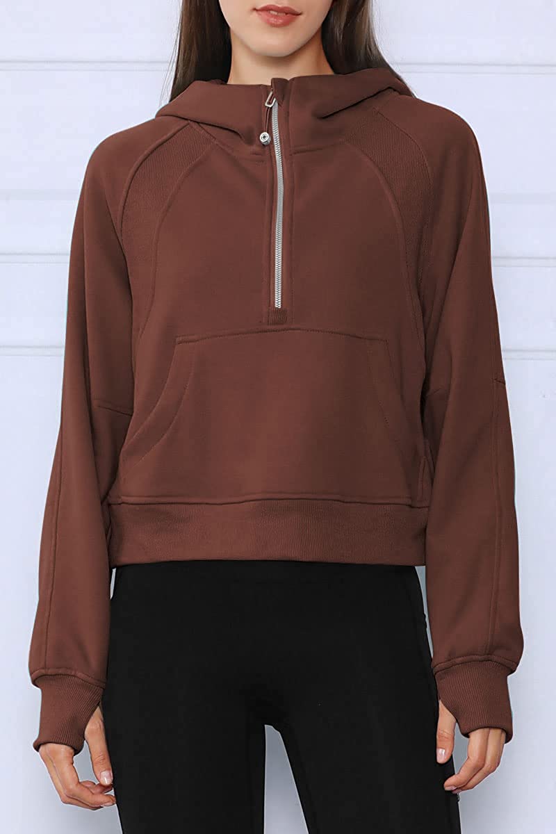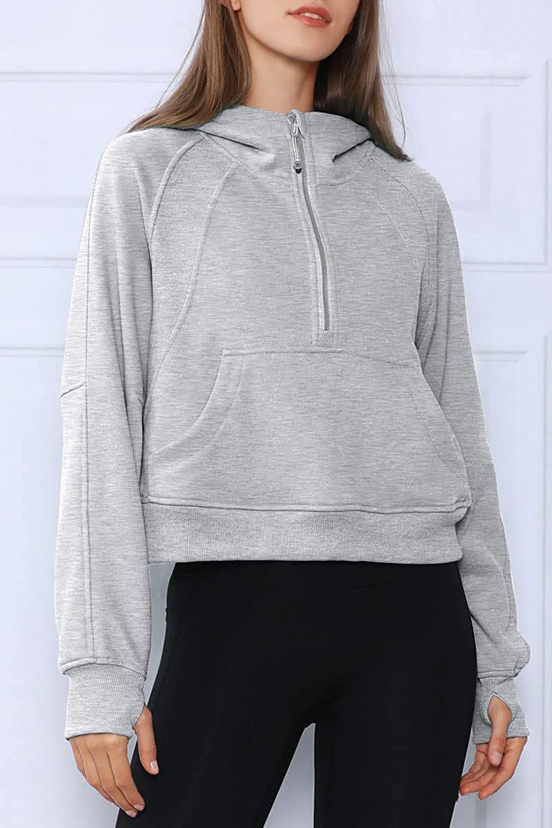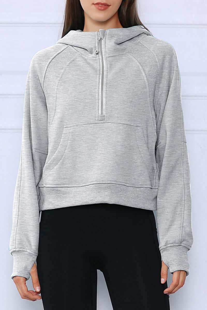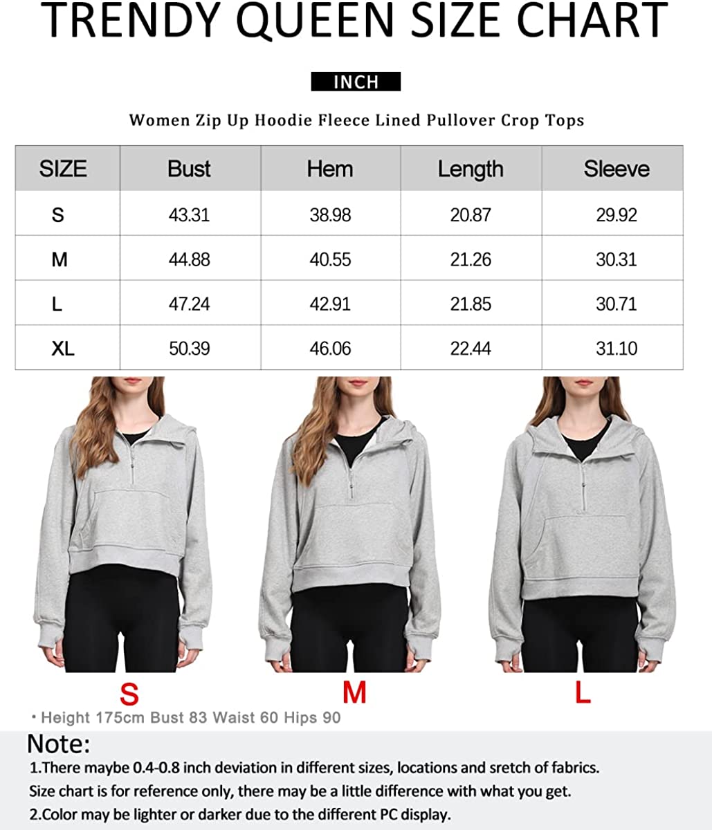 • ★Design: Athletic workout hoodies,women pullover sweatshirt,drop shoulder collar, long sleeve with thumb holes, half zip collar, solid color, cropped length,fleece lined, relaxed fit,crop top, winter outfits for women, fashion and casual style, it's thick and really soft inside, standard size, a sweatshirt that goes with everything.