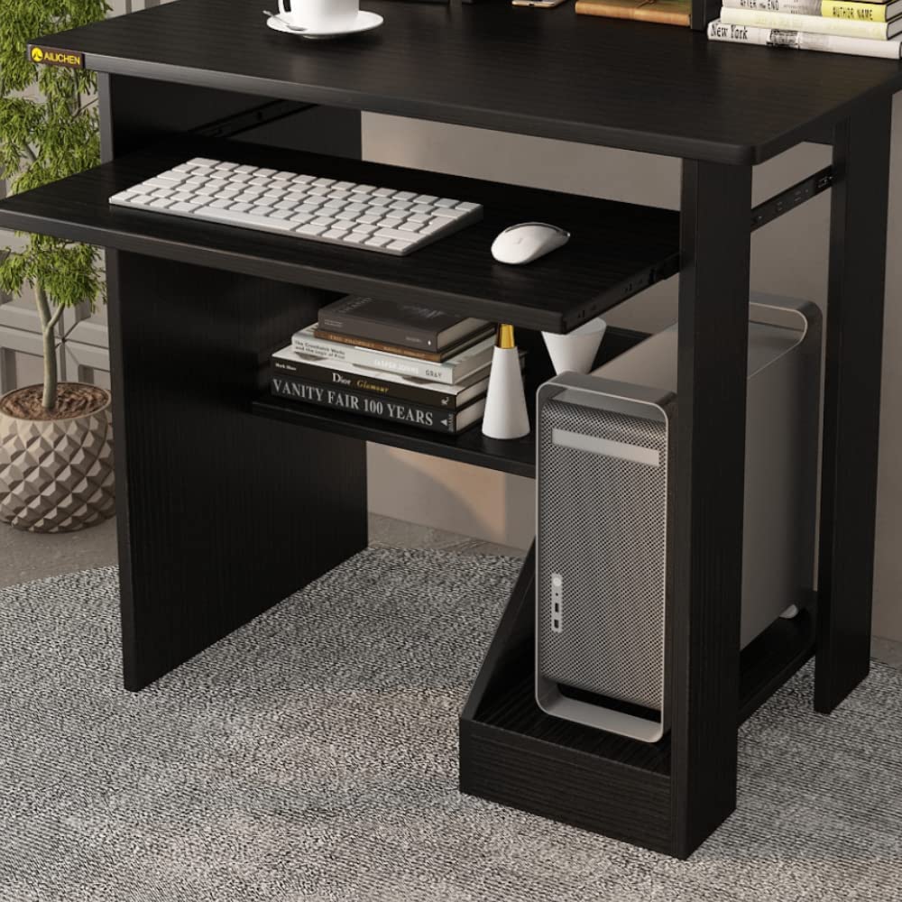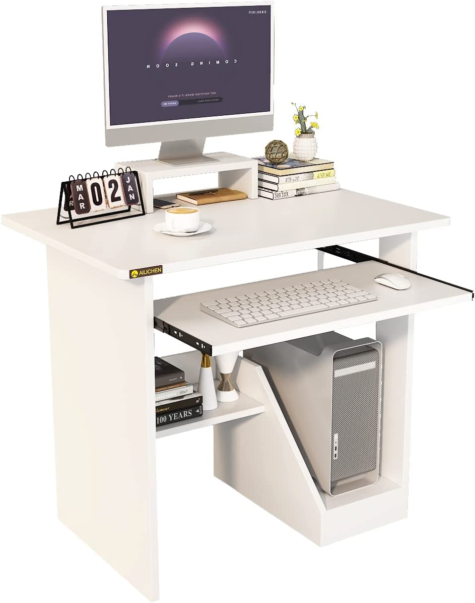 ALISENED Home Office Computer Desk with Monitor Stand Keyboard Tray, 29.5 Inch Study Writing Desk Small PC Laptop Table with Storage Shelves, Modern Workstation for Small Spaces Save Space