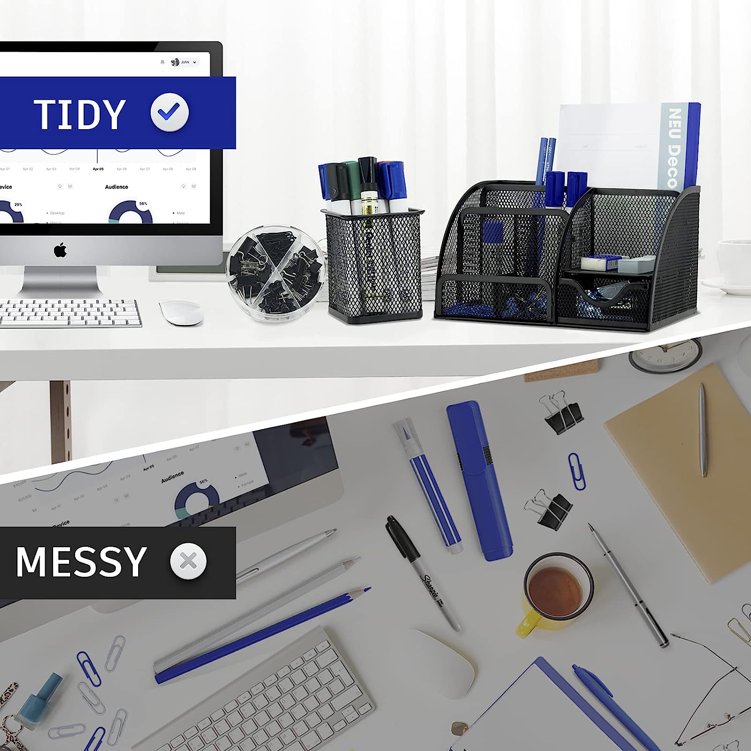 • [Office Desk Organizers and Accessories] Neudeco is proud to release our new desk organizer, perfect for all your office supplies. With multiple compartments, a drawer, paperclip holder, and pen organizer, this desk accessory is designed to keep your workspace organized and clutter-free.