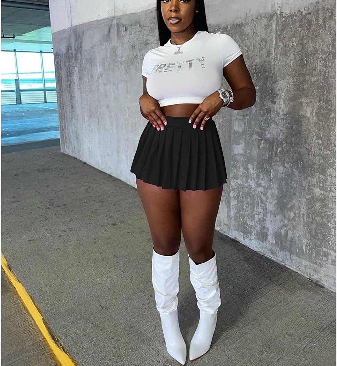 • Size Tips: Refer to the size chart before your purchase our black white skirt for girls womens, It is pleated super short skirt,Fabric: Stretchy/ Soft/ Comfortable material,The skirt is not lined with shorts