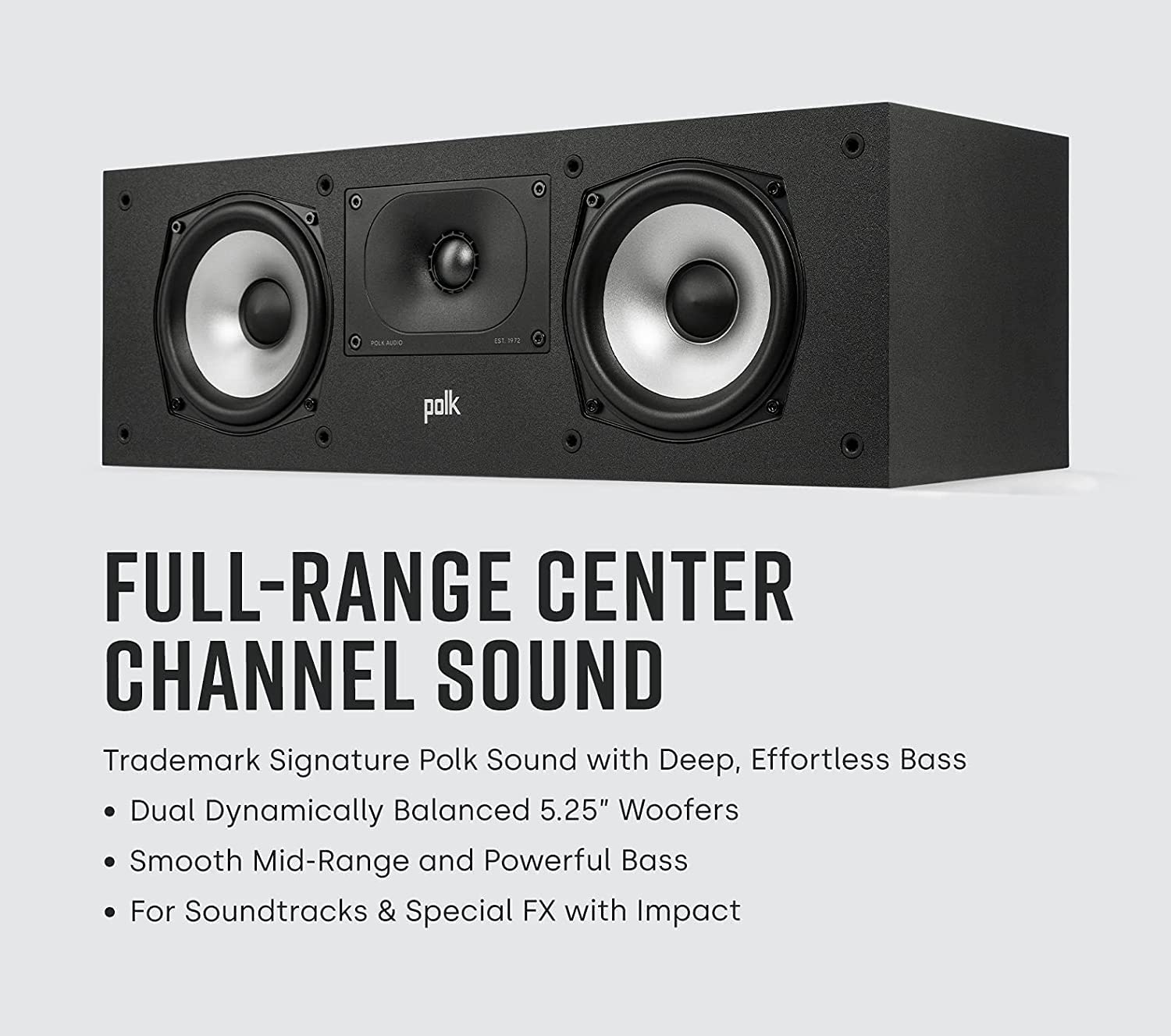 • COMPACT CENTER CHANNEL SPEAKER - Enjoy focused, crystal-clear dialogues and dynamic, hi-res sound with Polk Monitor XT30 that features a 1" Tweeter & (2) 5.25" Dynamically Balanced Woofer for smooth mid-range and effortless bass in an immersive soundstage