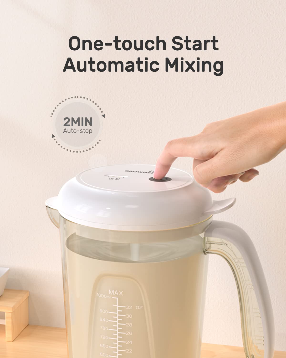 Grownsy 32OZ Baby Formula Mixer Pitcher, Rechargeable Electric Formula Mixing Pitcher, Automatically Mixing for Formula Powder Without Air Bubbles or Lumping,BPA Free,Easy to Clean