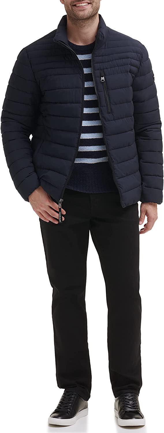 - Function and style: These winter coats for men land just past the waist look good zipped-up or left open and represent the comfortable style you expect in a piece for Calvin Klein