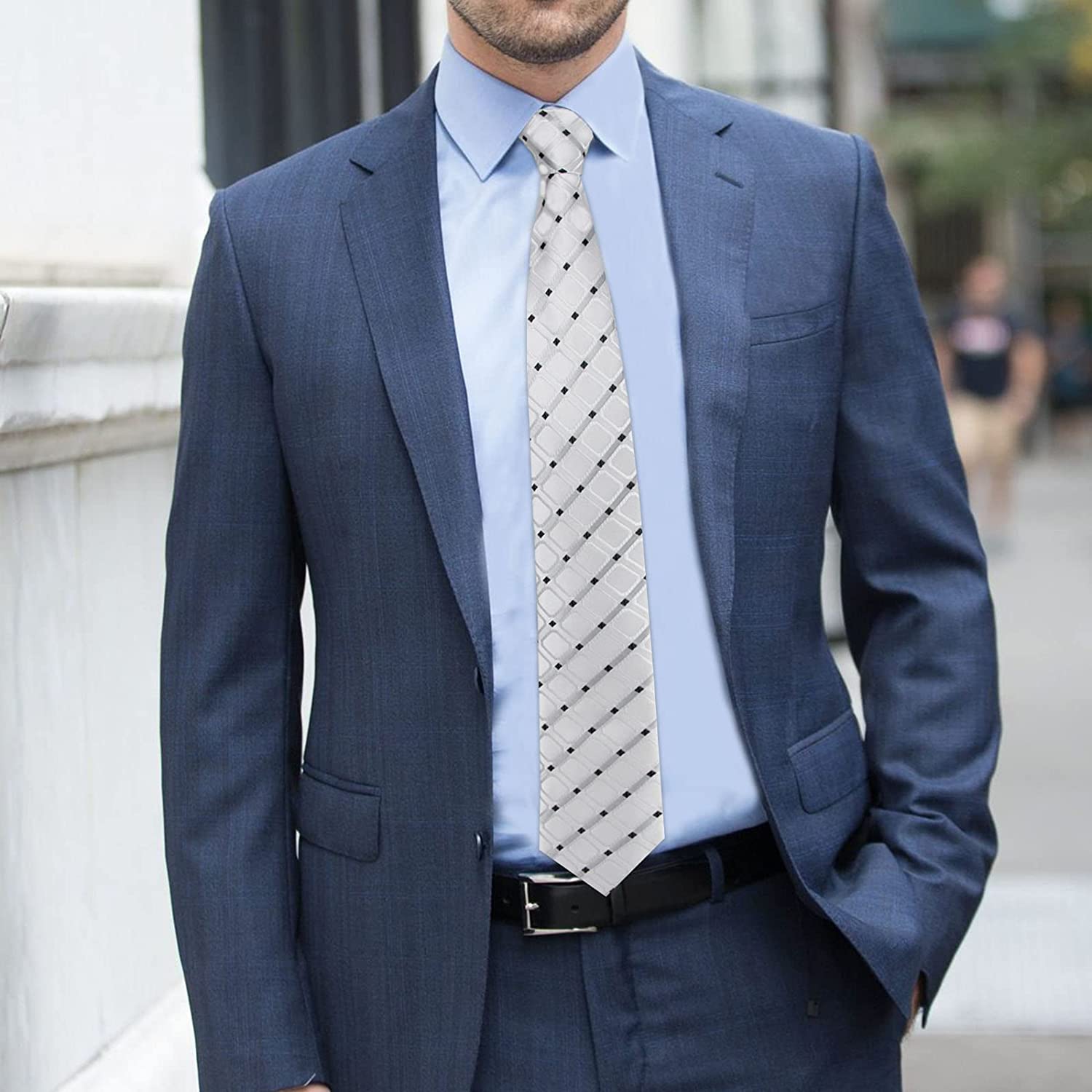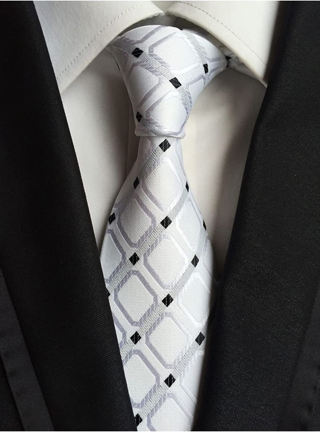 【Silk Stripe Plaid Men Neck Tie】white check jacquard design necktie patterns are woven directly into the necktie during production, not printed or dyed on top of the fabric, granting sharper contrast and more vivid colors. The high-density silk and thick interlining ensure strong, sturdy, tough, long-lasting knots. Which is resistant to both stains and fray.